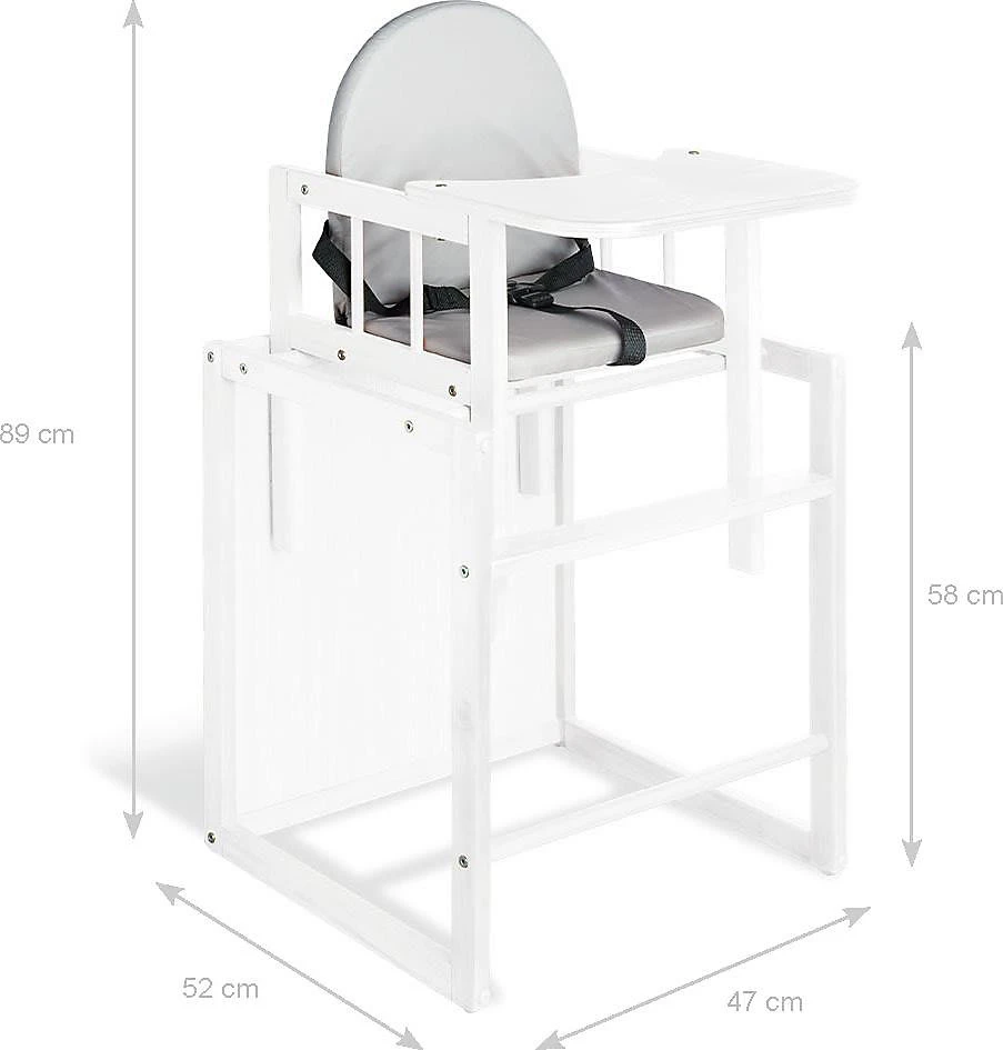 Mit diesem Kombihochstuhl „Lene” kommt ein langjähriger Alltagsbegleiter, der sich in wenigen Schritten von einem Hochstuhl zu einer Tisch- und Stuhl-Kombination umbauen lässt. Das zeitlose Design fügt sich in jedes Wohnumfeld ein und punktet mit einer weich gepolsterten, abwaschbaren Sitzfläche und Rückenlehne. Dank der stabilen Konstruktion ist für eine hohe Kippsicherheit gesorgt und die Oberflächen sind abwischbar und pflegeleicht. Für eine jahrelange Nutzung lässt sich der Hochstuhl mit wenigen Handgriffen einfach umbauen und kann so auch einzeln als stabiler Kinderstuhl mit Tisch in jedem Kinderzimmer beim Malen und Basteln eingesetzt werden.