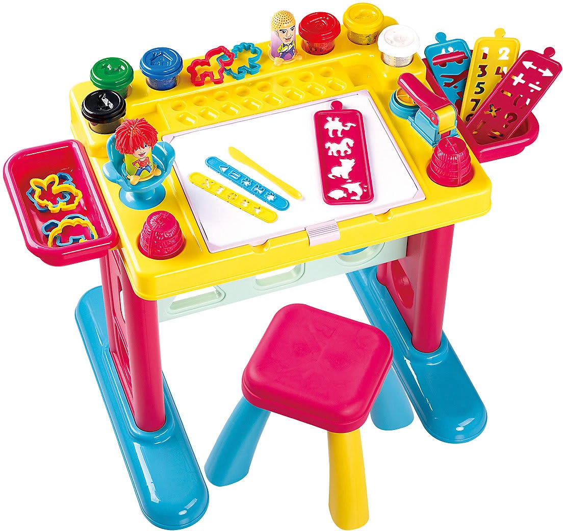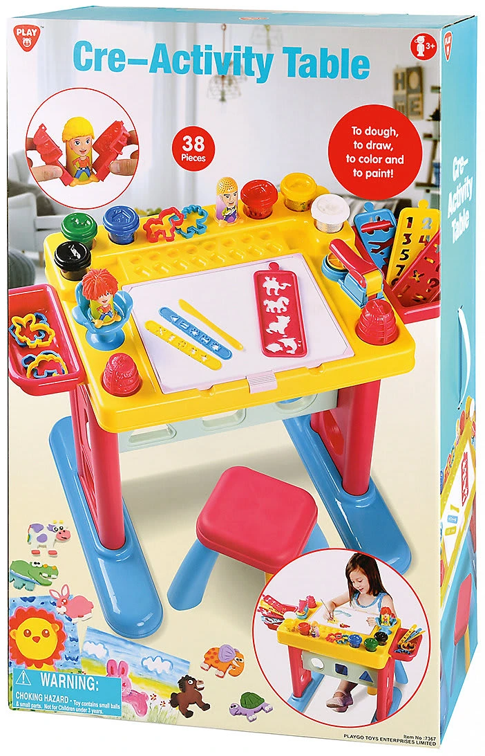 Der CRE-ACTTY Tisch der Marke Playgo wird ihrem Kind viel Unterhaltung bieten. Das Kind kann seiner Kreativität freien Lauf lassen und mit diversen Schablonen und bunten Farben malen. Das Set wird mit einem passenden Hocker geliefert.