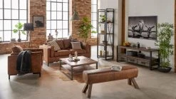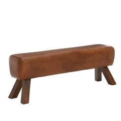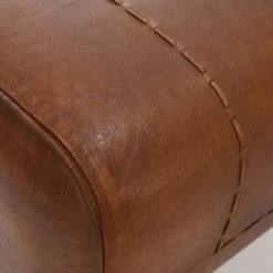 Rustikale Bank aus Echtleder und Beinen aus Massivholz.