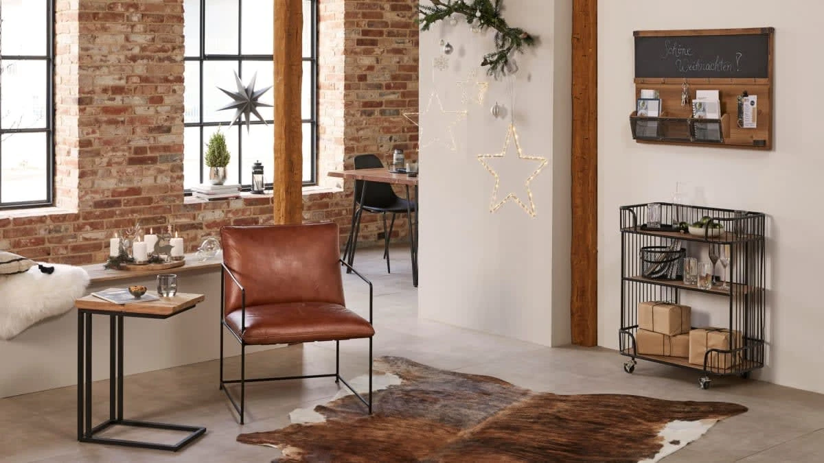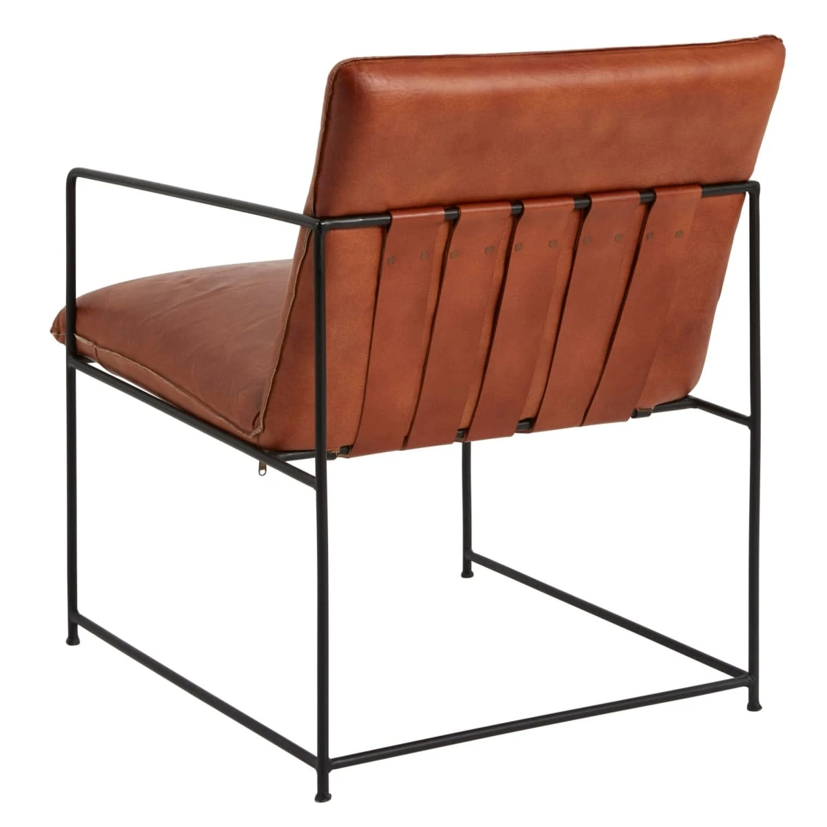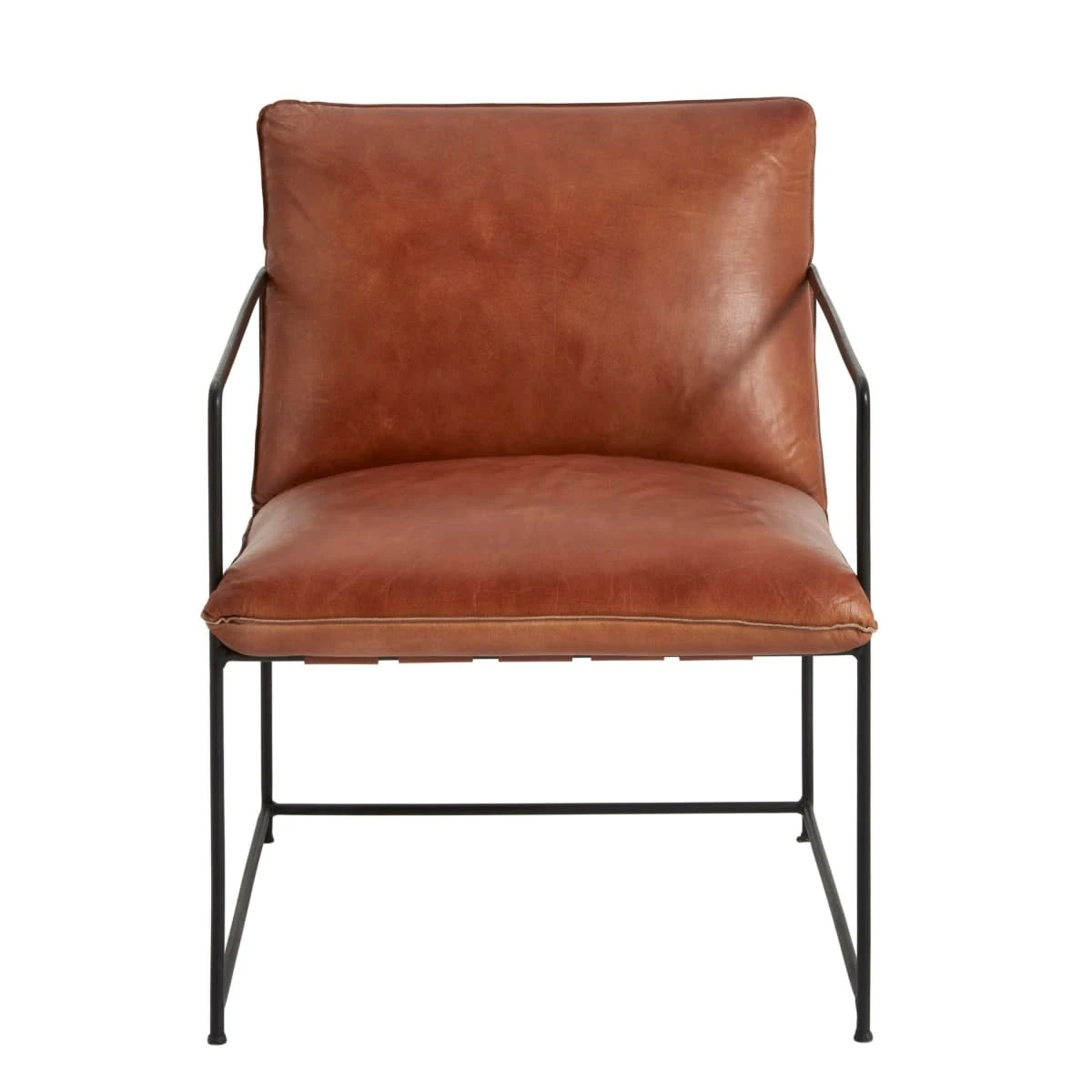 Das filigrane Metallgestell verleiht diesem mit Leder bezogenen Stuhl eine schlichte Eleganz.
