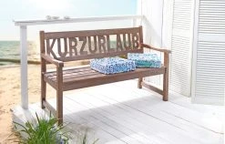 Outdoor-Bank mit ausgearbeitetem Schriftzug.