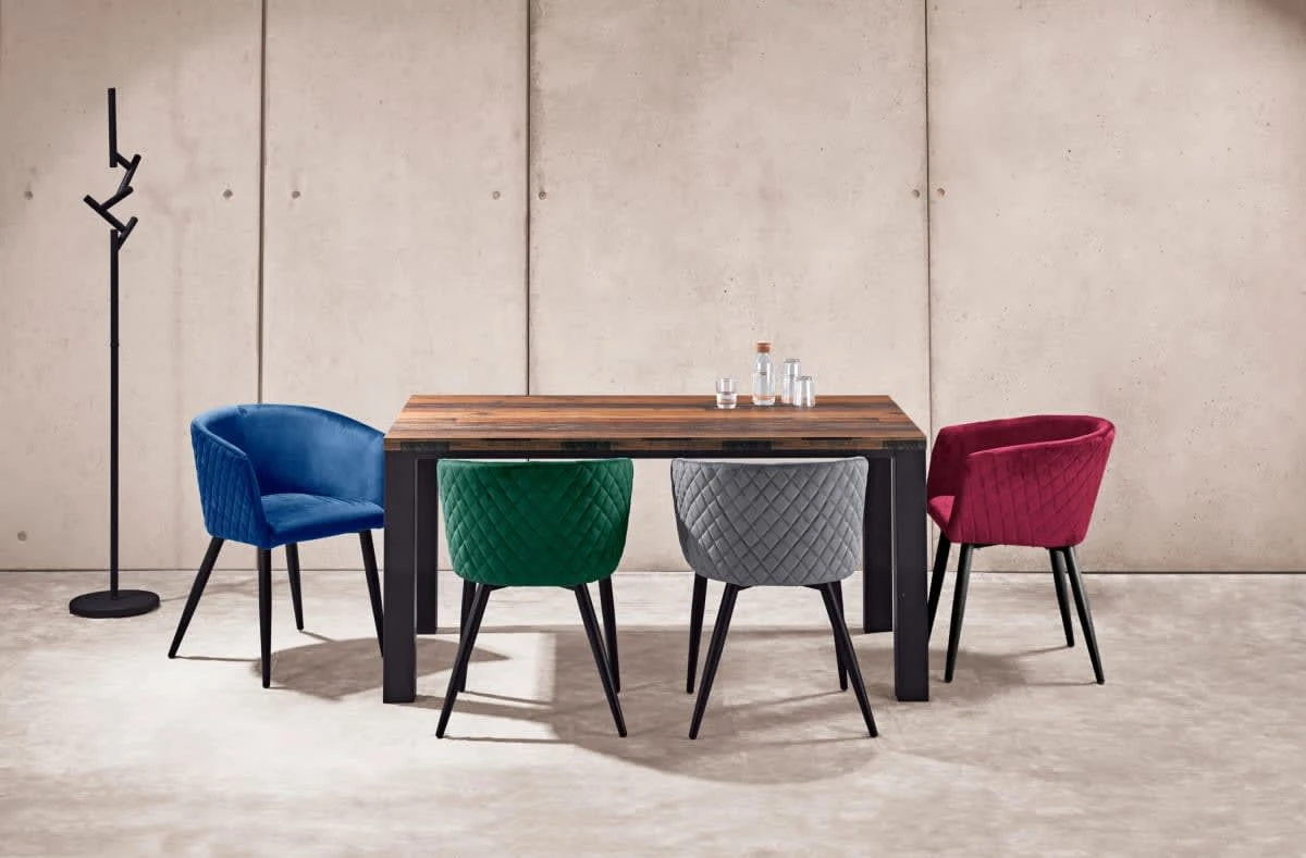 – Moderner Polsterstuhl mit Samtbezug und Beinen aus Metall