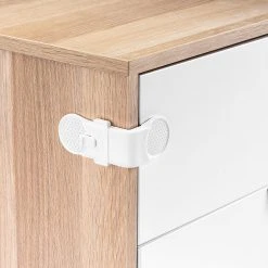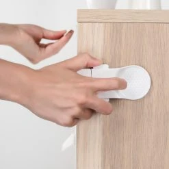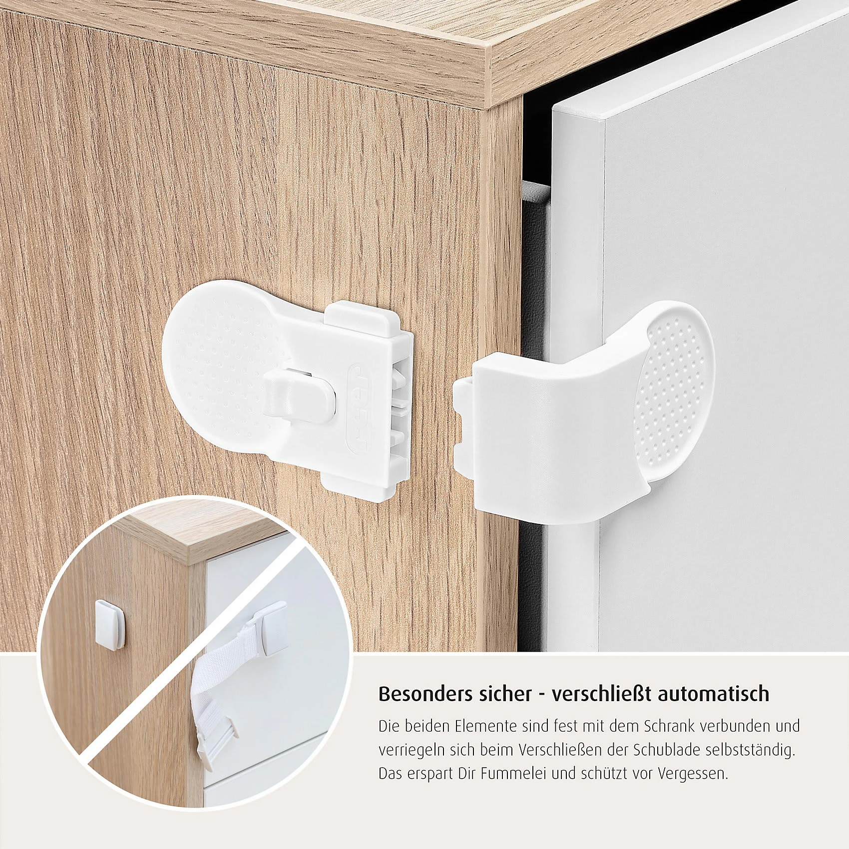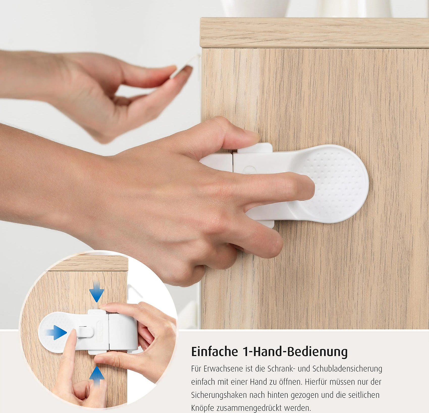 Mit der Schrank- und Schubladensicherung von Reer sind Deine Möbel kindersicher verschlossen. Schranksicherung von Reer 1 Stück zum Sichern von Schubladen, Schränken und Elektrogeräten geeignet für Möbel aus Holz und Stahl; gebeizte, lackierte sowie Furnier- und Laminatoberflächen rückstandsfreie Klebemontage – ohne Bohren und Schrauben aus Kunststoff Die Schrank- und Schubladensicherung von Reer hilft Dir, Möbel, Schränke und Elektrogeräte sicher vor neugierigen Kinderhänden zu verschließen. Sie wird mit dem mitgelieferten, speziell entwickelten Reer Safety Performance Tape Klebeband fixiert. So hält die Sicherung besonders stark und zuverlässig. Die Schranksicherung ist so designt, dass Kinder sie nicht öffnen können. Erwachsene hingegen können die Sicherung mit nur einer Hand öffnen. Mit ihrem unauffälligen Design passt die Sicherung zu jeder Wohnungseinrichtung. Wird die Halterung nicht mehr benötigt, lässt sie sich rückstandsfrei wieder entfernen. Hinweis Nicht geeignet für unebene Oberflächen und vertiefte Schubladen.