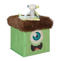 Diese niedliche Spielzeugtruhe ist ein Mutiltalent fürs Kinderzimmer. Die Sitzbox bietet ausreichend Stauraum für Kuscheltiere und andere Spielsachen. Setzen Sie den Deckel drauf und schon ist von der Unordnung nichts mehr übrig. Dank coolem Monster-Motiv und flauschigem Deckel macht das Aufräumen sicher auch Ihren Kleinen Spaß. Anschließend kann die Aufbewahrungskiste problemlos zum Sitzen genutzt werden. Wird einmal mehr Platz benötigt, kann der Sitzwürfel einfach zusammengefaltet werden.