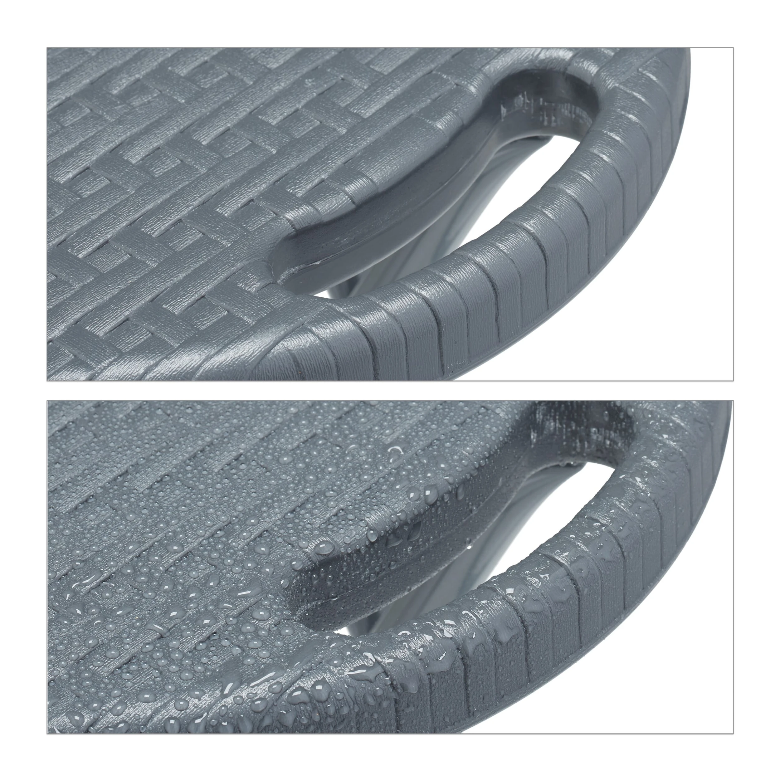 Wer die Zeit gern im Garten, auf dem Balkon oder der Terrasse verbringt, der ist mit diesen Klappstühlen genau richtig beraten. Die Garten-Sitzhocker im 2er Set sind ideal als flexible Sitzgelegenheit im heimischen Außenbereich oder beim Camping, um den Sommer entspannt genießen zu können. Das graue Ratten-Muster ist ein dezenter Hingucker und kann vielseitig kombiniert werden. Zudem sind die Rattanhocker bei Nichtverwendung schnell zusammengeklappt und platzsparend verstaut.