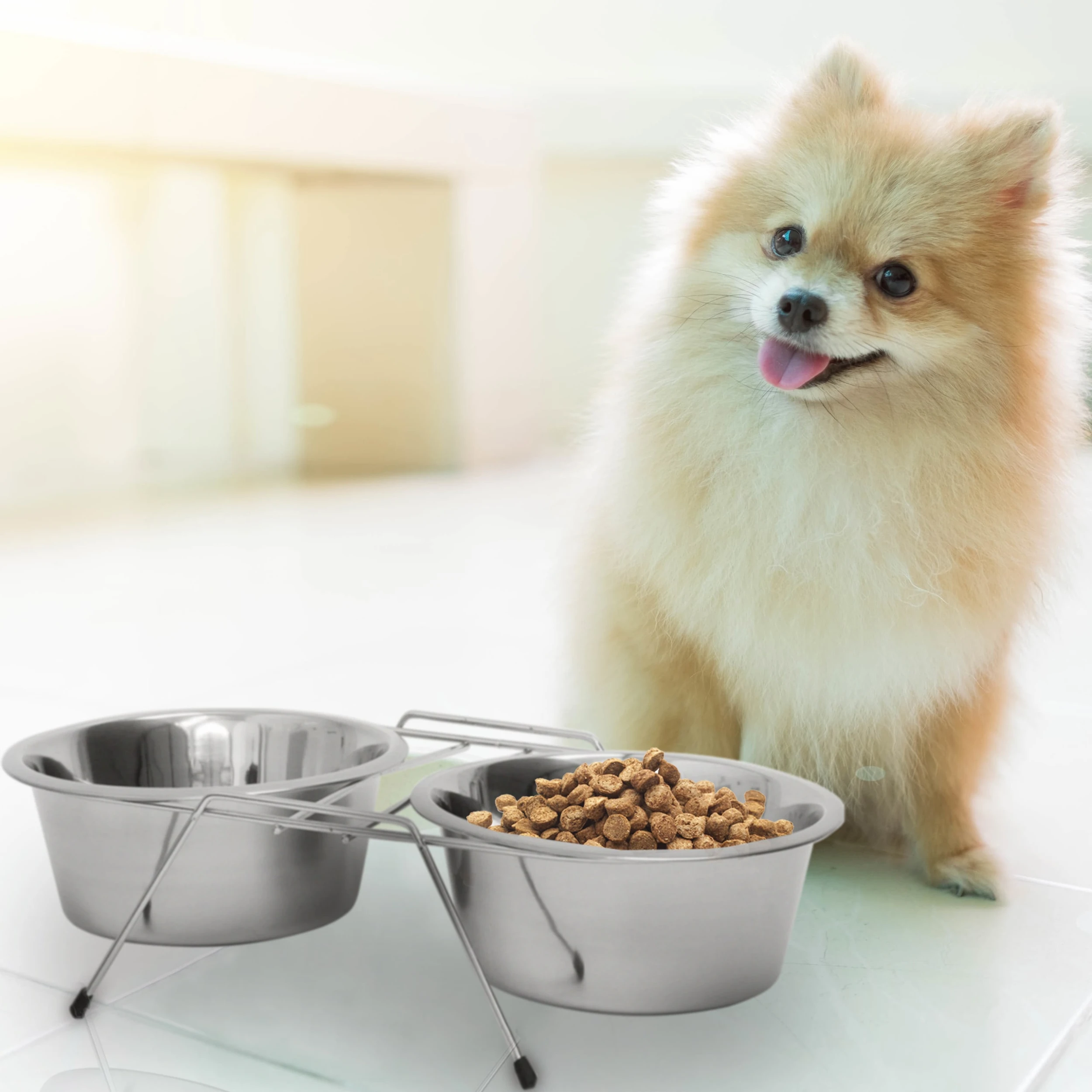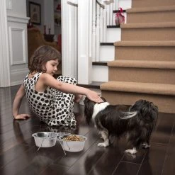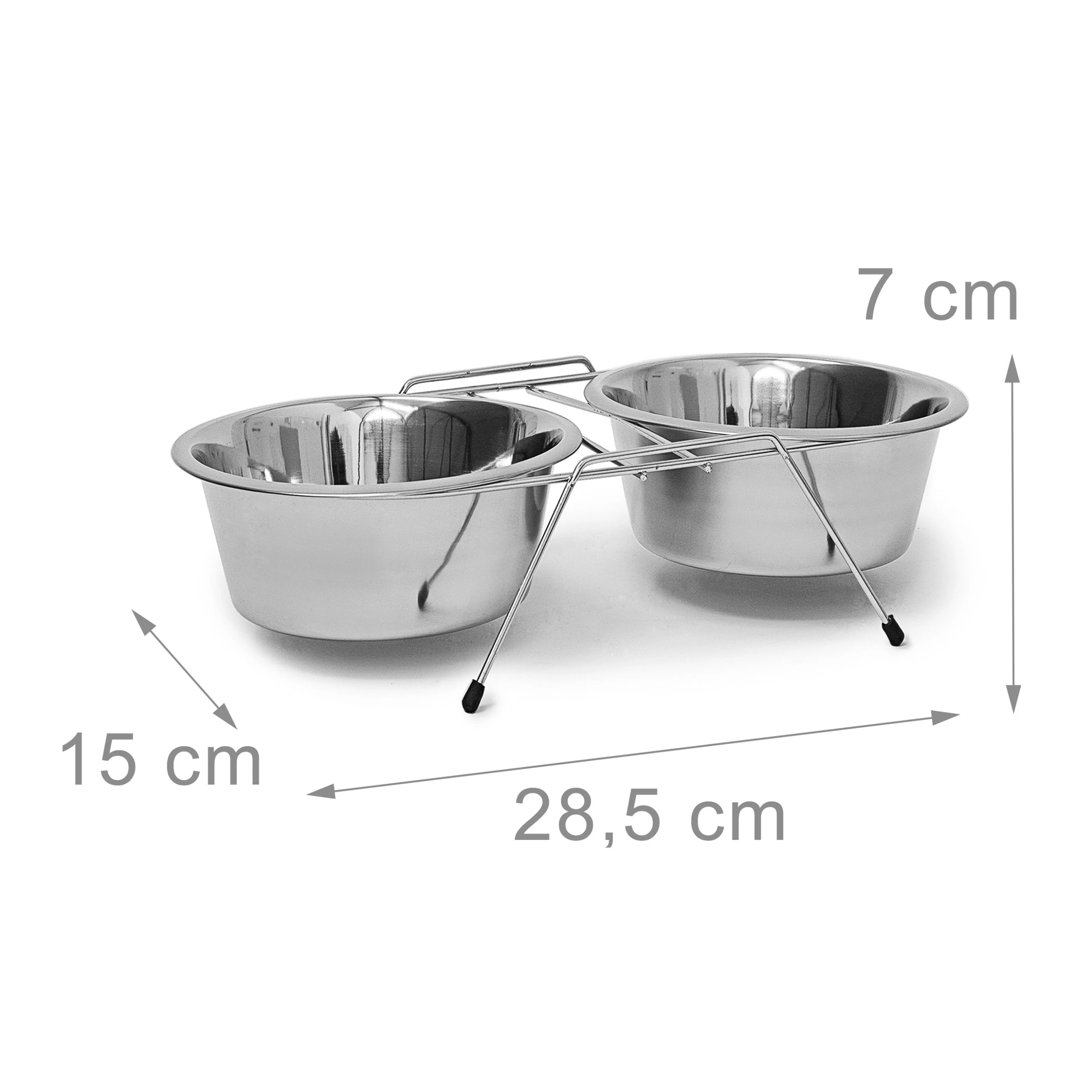Für eine Stärkung zwischendurch sorgt die Hundebar aus Edelstahl. Hier können Sie Ihrem Liebling Futter und Wasser gleichzeitig zur Verfügung stellen. Die beiden Näpfe stehen ein einem Ständer mit gummierten Füßen. So steht die Futterstation auch bei stürmischen Vierbeinern sicher und rutscht nicht weg.
