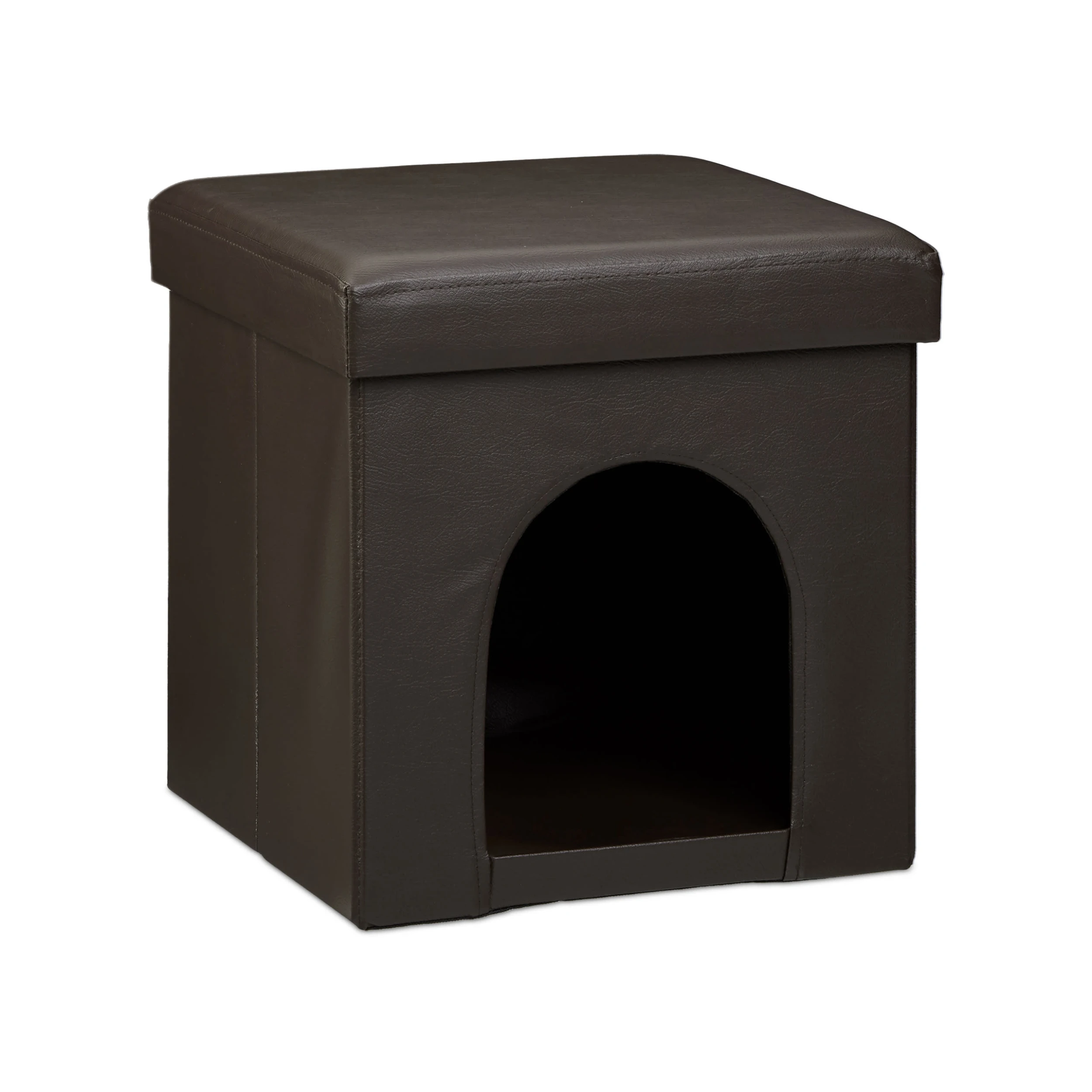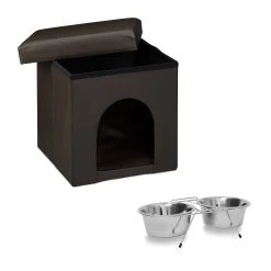 Dieses Set eignet sich ideal, um Ihrem Vierbeiner eine gemütliche Rückzugsmöglichkeit zu schaffen. Ihr Haustier wird sich im Inneren dieses Sitzwürfels wohl fühlen. Eine geräumige Luke bildet den Zugang zum großzügigen Stauraum. Auch größere Hunde und Katzen finden hier Platz. Das Kunstleder lässt den Sitzhocker in Ihrem Wohnzimmer zudem schick aussehen. Und wenn Sie spontan Platz benötigen, können Sie die Hundehütte mit wenigen Handgriffen zusammenfalten und verstauen.