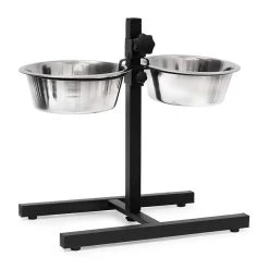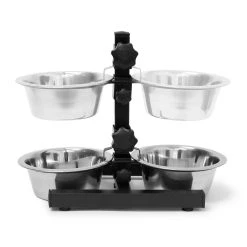 Für eine Stärkung zwischendurch sorgt die Hundebar aus Edelstahl. Hier können Sie Ihrem Liebling Futter und Wasser gleichzeitig zur Verfügung stellen. Die beiden Näpfe stehen ein einem Ständer mit gummierten Füßen. So steht die Futterstation auch bei stürmischen Vierbeinern sicher und rutscht nicht weg.
