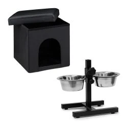 Dieses Set eignet sich ideal, um Ihrem Vierbeiner eine gemütliche Rückzugsmöglichkeit zu schaffen. Ihr Haustier wird sich im Inneren dieses Sitzwürfels wohl fühlen. Eine geräumige Luke bildet den Zugang zum großzügigen Stauraum. Auch größere Hunde und Katzen finden hier Platz. Das Kunstleder lässt den Sitzhocker in Ihrem Wohnzimmer zudem schick aussehen. Und wenn Sie spontan Platz benötigen, können Sie die Hundehütte mit wenigen Handgriffen zusammenfalten und verstauen.