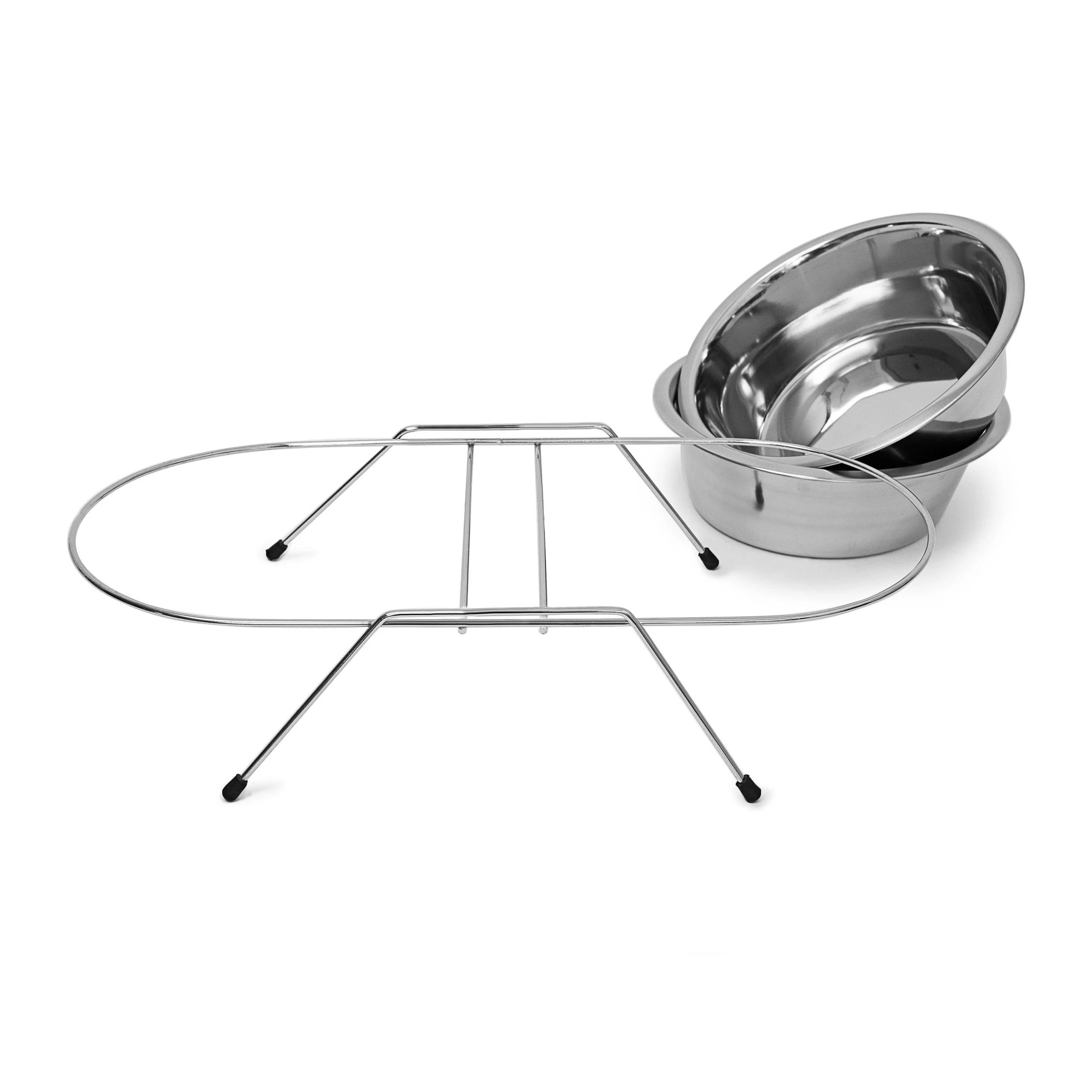 Für eine Stärkung zwischendurch sorgt die Hundebar aus Edelstahl. Hier können Sie Ihrem Liebling Futter und Wasser gleichzeitig zur Verfügung stellen. Die beiden Näpfe stehen ein einem Ständer mit gummierten Füßen. So steht die Futterstation auch bei stürmischen Vierbeinern sicher und rutscht nicht weg.