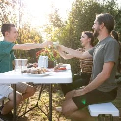Schwerfällige und sperrige Gartenmöbel sind keine Freude, schließlich möchten Sie den Sommer zusammen mit Ihren Freunden einfach genießen und sich nicht schweißgebadet abmühen. Die aus 2 Bierbänken bestehende Bierzeltgarnitur ist die stressfreie Lösung für Ihren Garten, den Campingplatz oder die Party im Innenbereich. Um die Bänke einsatzbereit zu machen, müssen Sie sie bloß aufklappen. Ja, das war’s schon. Dank der Griffe können Sie die zusammengeklappten Gartenbänke wie Koffer durch die Gegend tragen – praktisch!