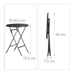 • Höhe des aufgestellten Tisches: ca. 75,5 cm, D: ca. 60 cm, Tischplattenstärke: ca. 2,6 cm
