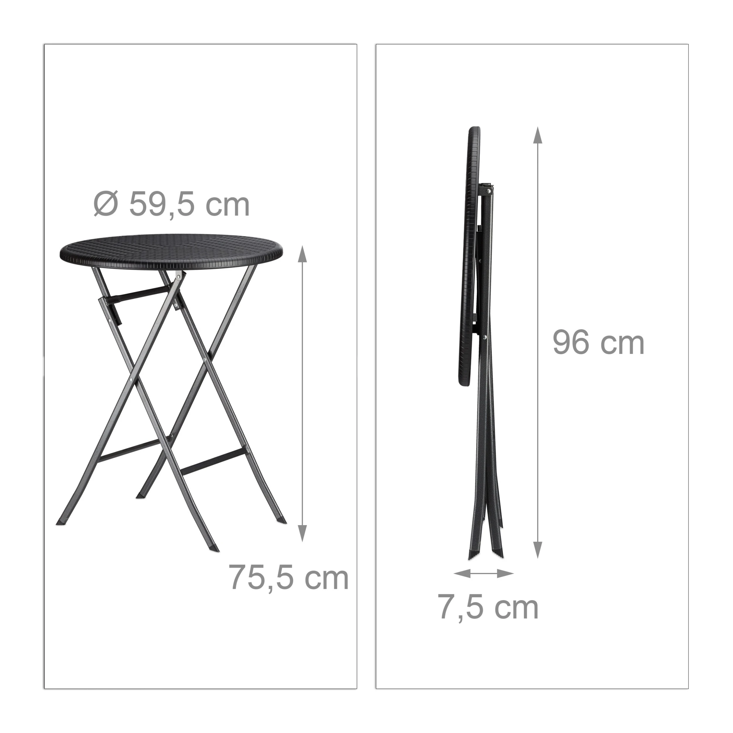 • Maße des zusammengeklappten Tisches H x B x T: ca. 7,5 x 96 x 60 cm