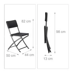 • Maße eines zusammengeklappten Stuhles H x B x T: ca. 98 x 44 x 13 cm