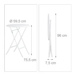 • Höhe des aufgestellten Tisches: ca. 75,5 cm, D: ca. 60 cm, Tischplattenstärke: ca. 2,6 cm
