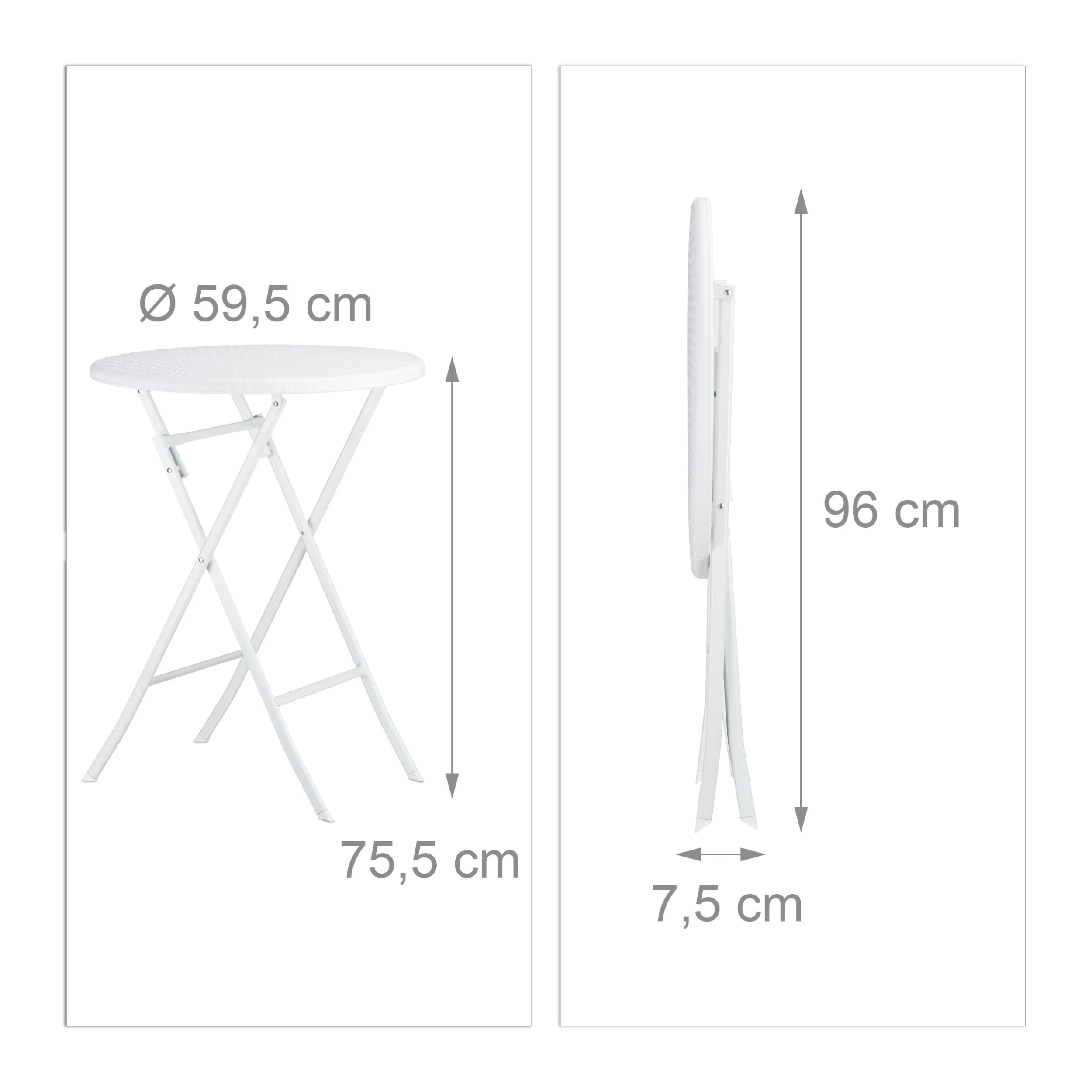 • Maße des zusammengeklappten Tisches H x B x T: ca. 7,5 x 96 x 60 cm