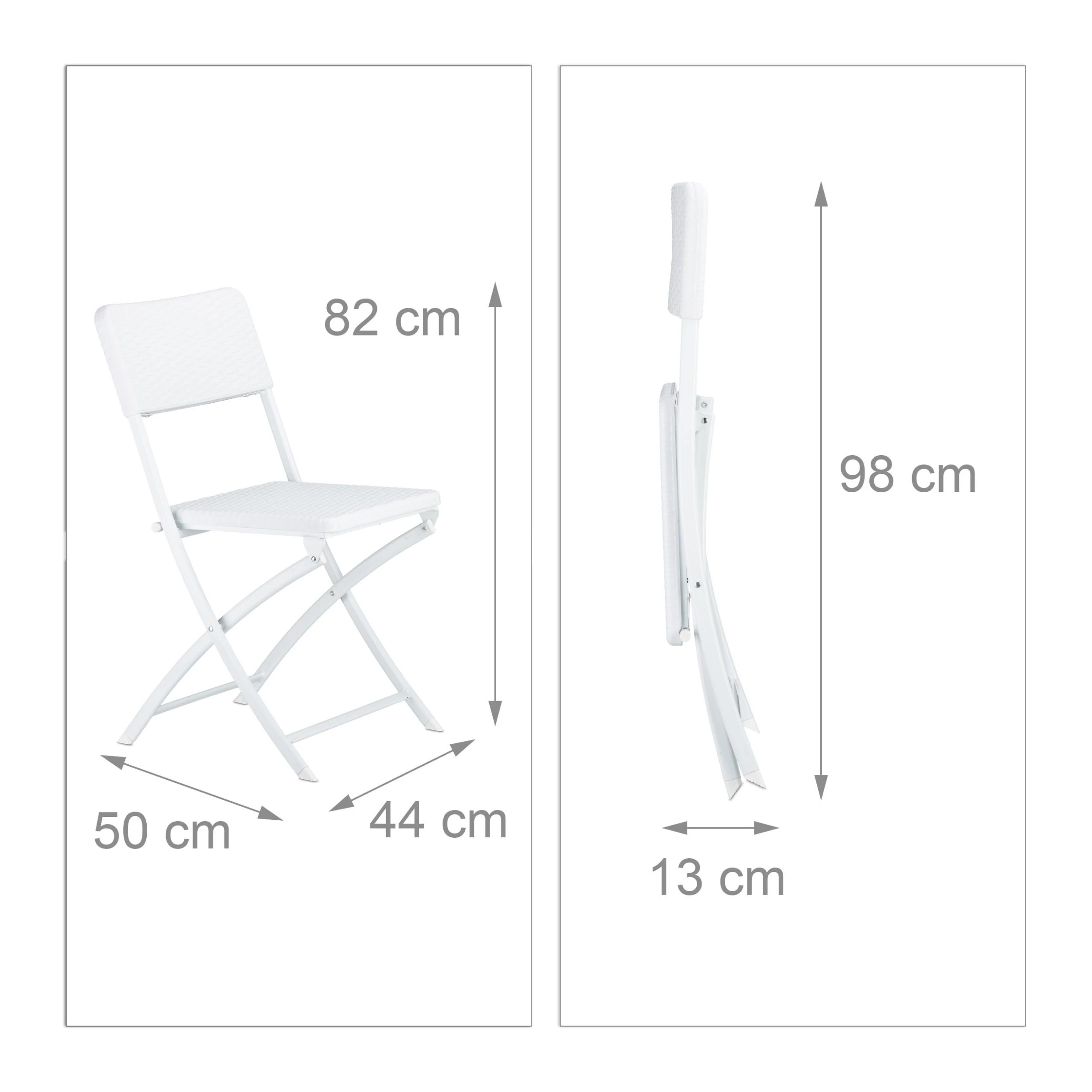 • Maße eines zusammengeklappten Stuhles H x B x T: ca. 98 x 44 x 13 cm