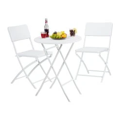 • Materialien: Tisch und Stühle bestehen aus Stahl und Kunststoff und haben Gummifüße