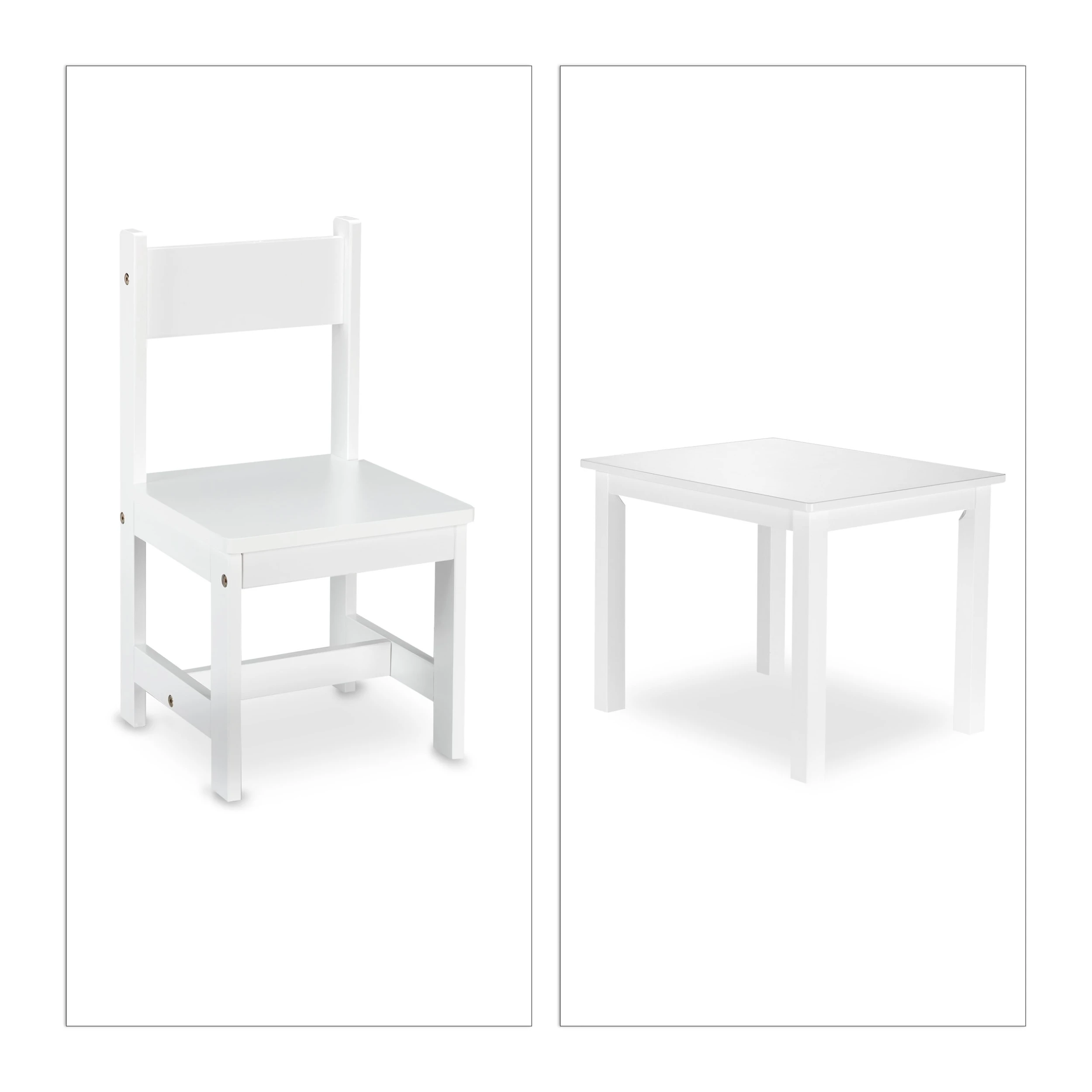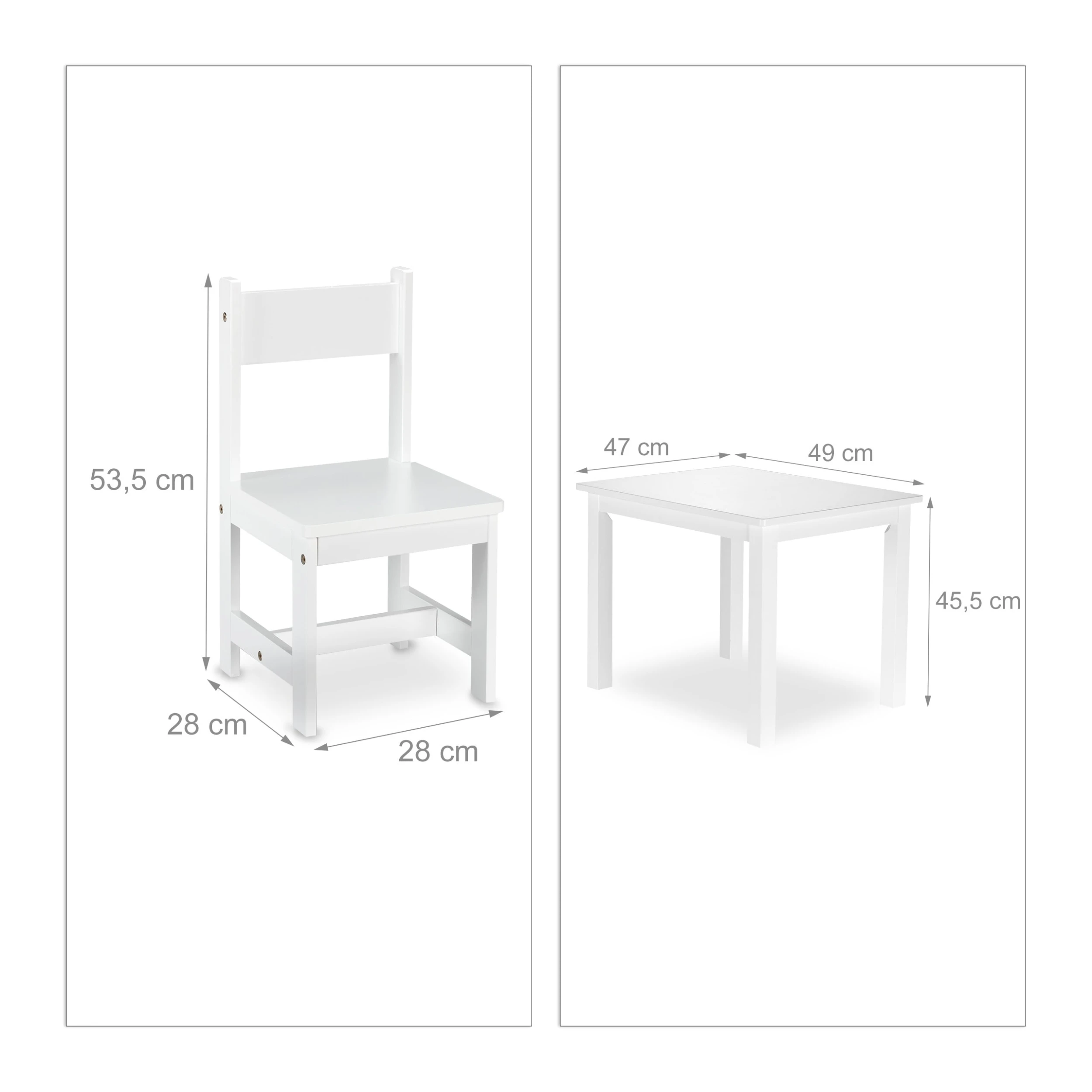 Diese niedliche Kindersitzgruppe ist eine tolle Sitzgelegenheit fürs Kinderzimmer. Das 3-teilige Set besteht aus einem Kindertisch und 2 Stühlen. Lassen Sie Ihre Kleinen selbstständig an dem geräumigen Basteltisch Malen, Spielen oder Essen. Dank der niedrigen Sitz- und Tischhöhe können 2 Kinder bequem auf der Kindersitzgarnitur Platz nehmen und sich wie die Großen fühlen. Die robuste Kindersitzecke überzeugt dabei mit ihrem modernen Design in Weiß.