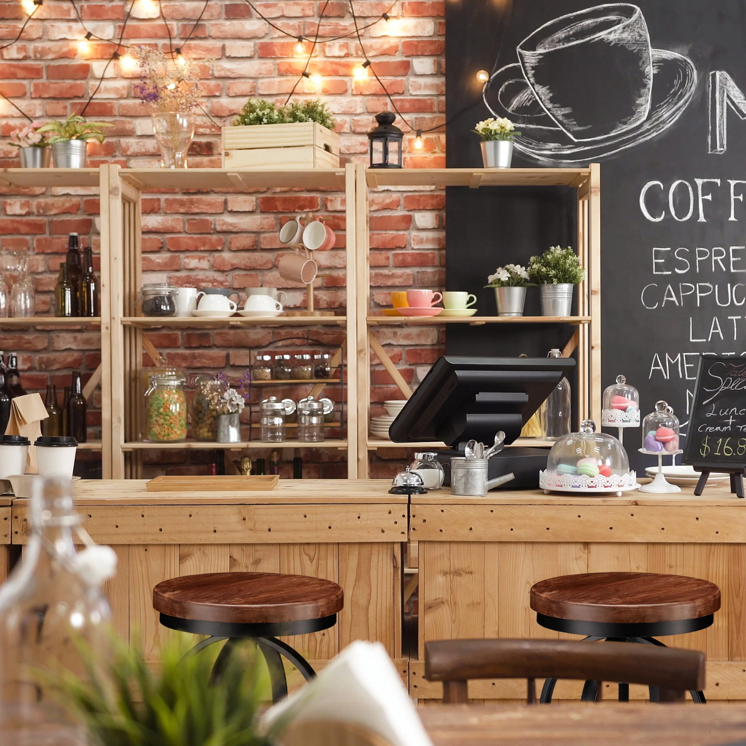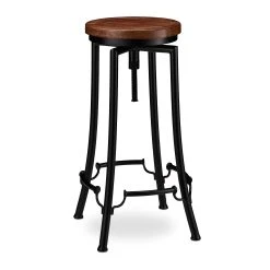 Verbreiten Sie nostalgischen Charme in Ihrem Zuhause mit diesem dekorativen Drehhocker. Das industrielle Zusammenspiel des schwarzen Eisengestells und der braunen Sitzfläche aus Holz zieht die Blicke an der Hausbar sicher auf sich. Der Hocker lässt sich um 360° drehen und bequem in der Höhe verstellen, sodass er ideal vor dem Tresen platziert werden kann. Setzen Sie den belastbaren Retrohocker im Industriedesign auch in der Gastronomie ein, wo die Fußstütze für optimalen Sitzkomfort sorgt.