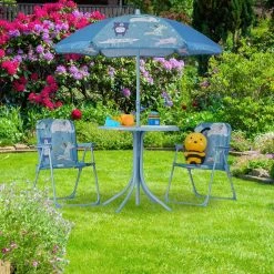 Wenn Ihre Kleinen wie die Großen am Tisch sitzen und in der Sonne Ihre Limonade schlürfen können, ist das sicher ein großer Spaß. Bereiten Sie Ihren Kindern mit dieser Kindersitzgruppe eine große Freude. Die niedlichen Designs mit süßen Tieren werden Jungen und Mädchen gleichermaßen zum Strahlen bringen. An dem Tisch können Ihre Kinder spielen, picknicken oder eine Pause vom Herumtollen einlegen, während der verstellbare Schirm angenehmen Schatten spendet.