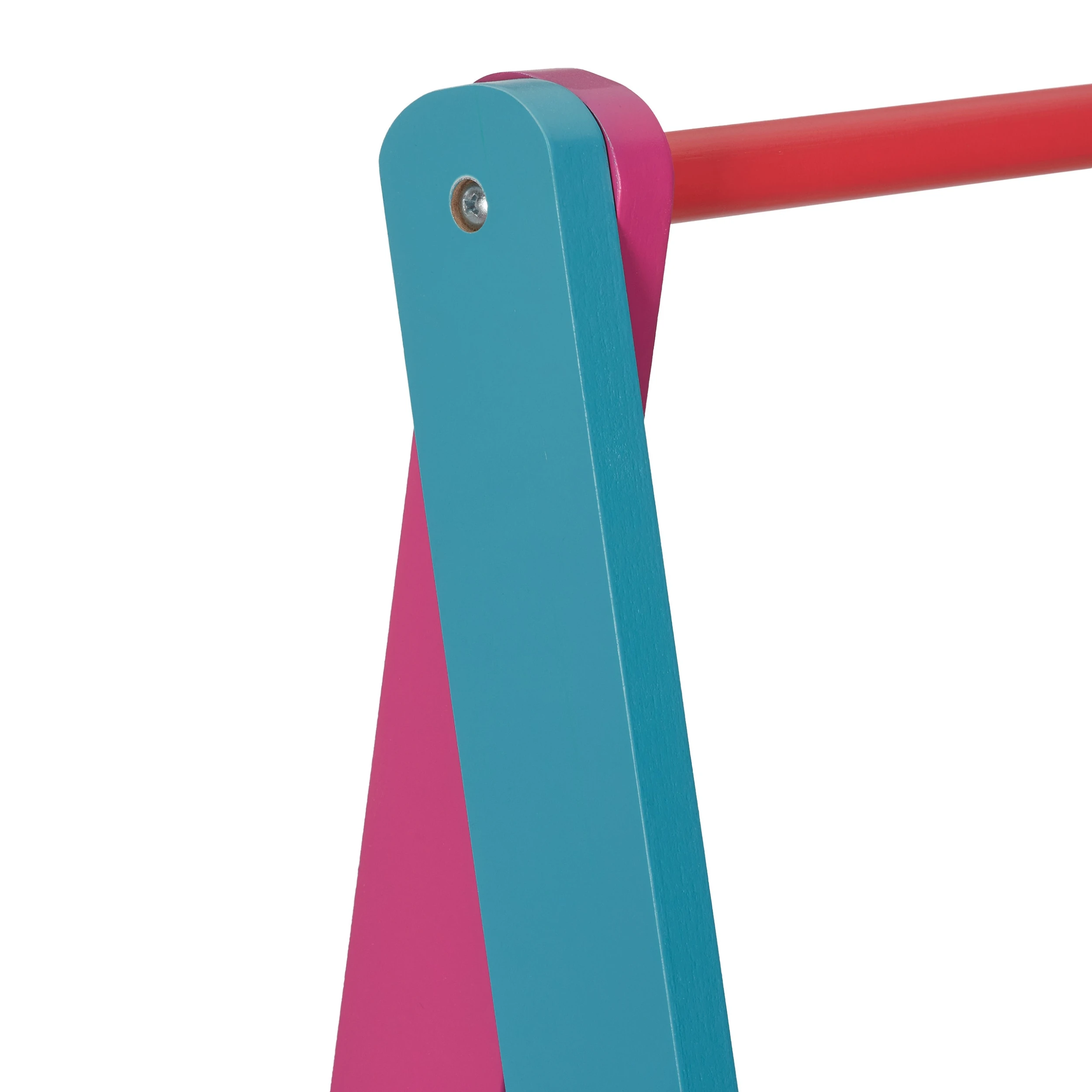 Die bunte Kinderkleiderstange ist das ideale Möbelstück für das Kinderzimmer, um Kinder- und Babykleidung ordentlich aufzubewahren. T-Shirts, Kleidchen, Hemden und Jäckchen können an der Garderobenstange aufgehängt werden. Weitere Kleidungsstücke wie Hosen, Mützen und Tücher oder auch ein kleiner Rucksack finden im Ablagefach ihren Platz. Dank der kindgerechten Größe der Standgarderobe können Deine Sprösslinge ihre Kleidung selbstständig aufhängen und so ganz nebenbei lernen, Ordnung zu halten.