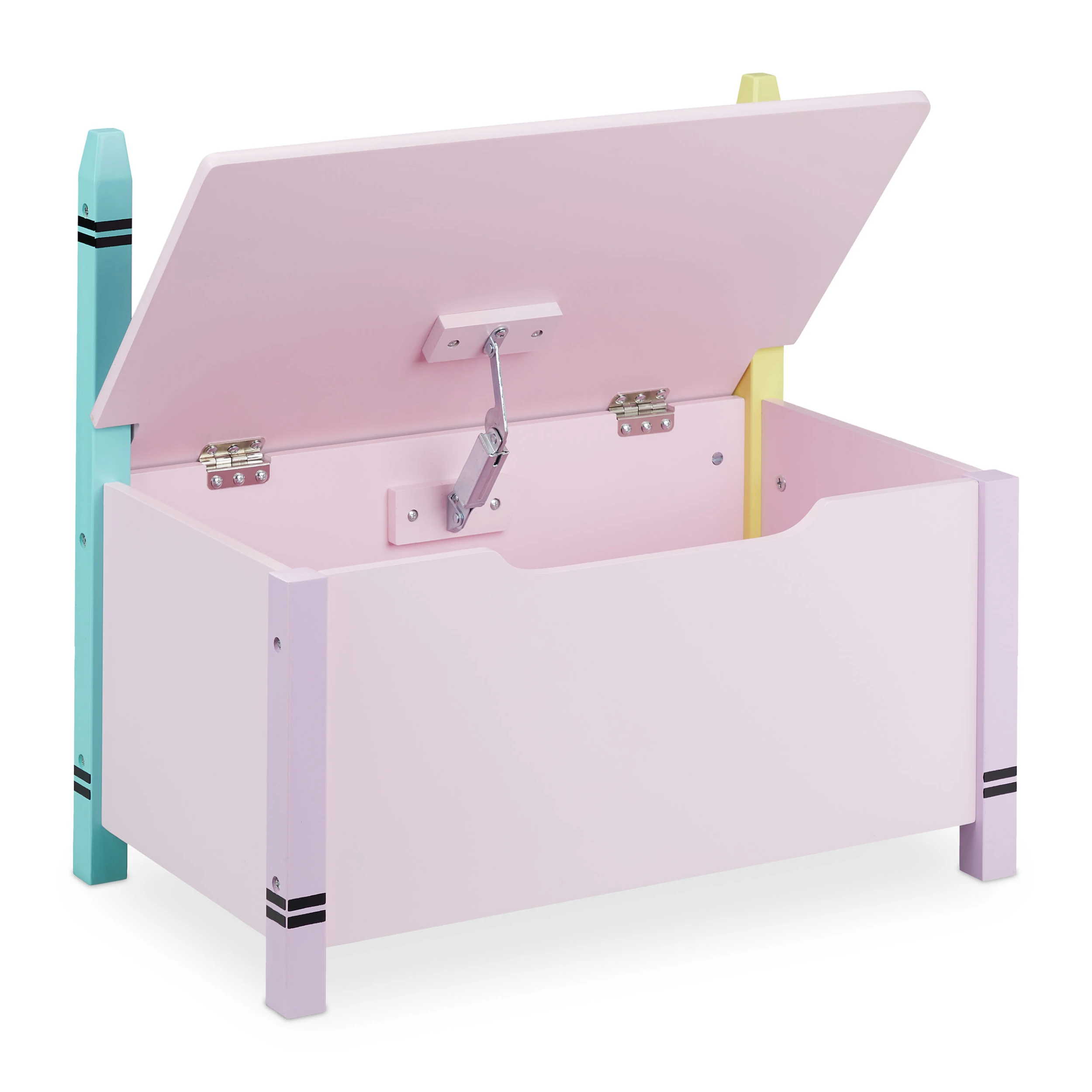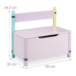 Diese niedliche Kinderbank ist eine tolle Sitzgelegenheit fürs Kinderzimmer. Nach ausgiebigem Toben können sich Deine Kleinen auf der Sitztruhe ausruhen. Die entstandene Unordnung ist dank der Spielzeugtruhe ebenso im Nu aufgeräumt. Kuscheltiere, Spielzeug, Bücher und mehr finden im geräumigen Fach der Truhenbank Platz und können mit dem Deckel blickdicht verstaut werden. Die robuste Kindersitzbank überzeugt dabei mit ihrem farbenfrohen Wachsmalstift Design, das Kinderaugen zum Strahlen bringt.
