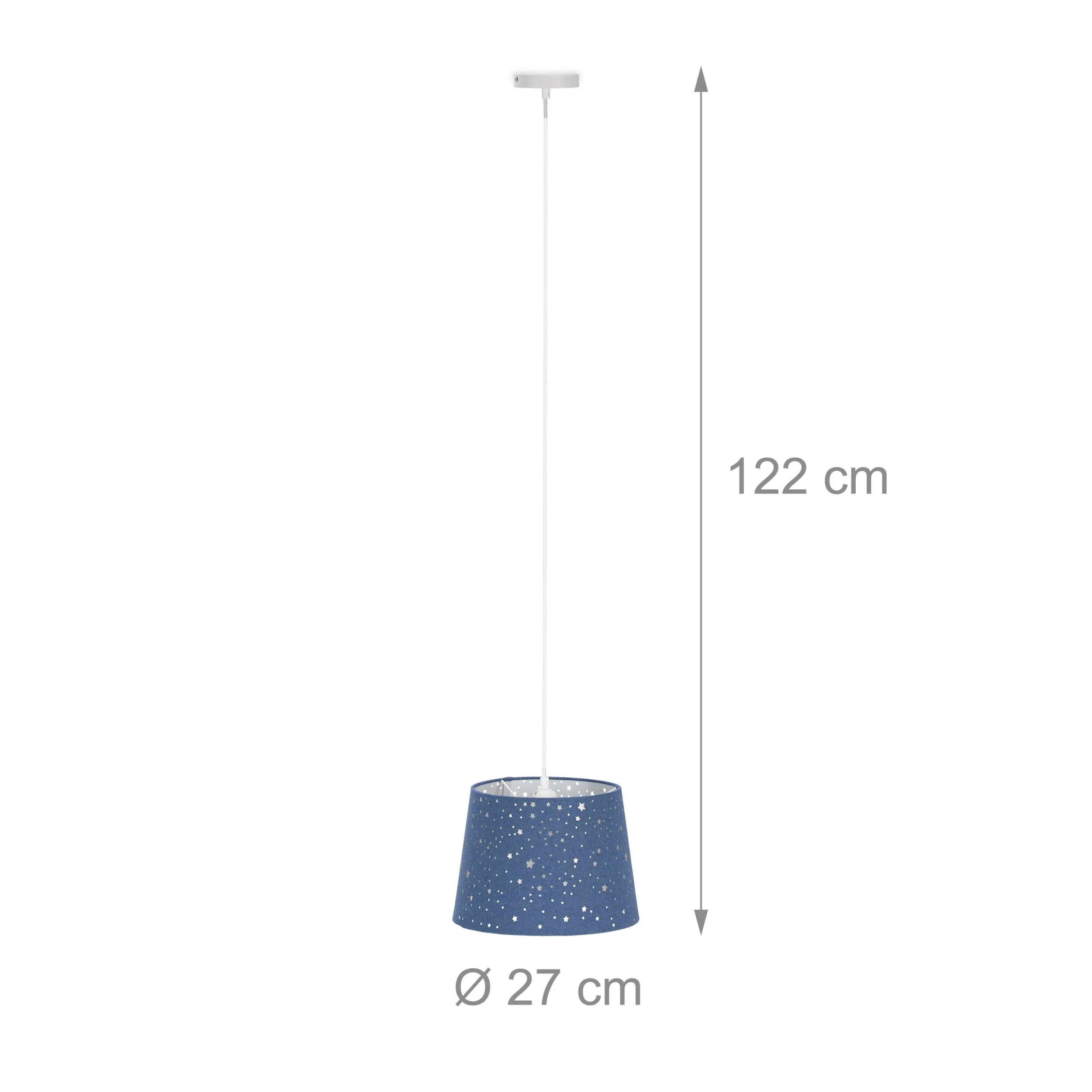 Mit dieser dekorativen Schirmlampe bringen Sie nicht nur das Kinderzimmer, sondern ebenso die Augen Ihrer Kleinen zum leuchten. Der Stoffschirm der Pendellampe ist mit transparenten Sternen versehen, durch die das Licht hindurch scheinen kann. Verabschieden Sie die kleinen Abenteurer nach einem anstrengenden Tag mit einem Sternenhimmel ins Traumland oder sorgen Sie am Morgen für ein sanftes Aufwachen. Dank der Farbauswahl können sich sowohl Jungen, als auch Mädchen an der Kinderlampe erfreuen.