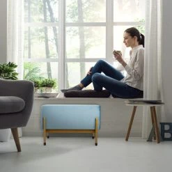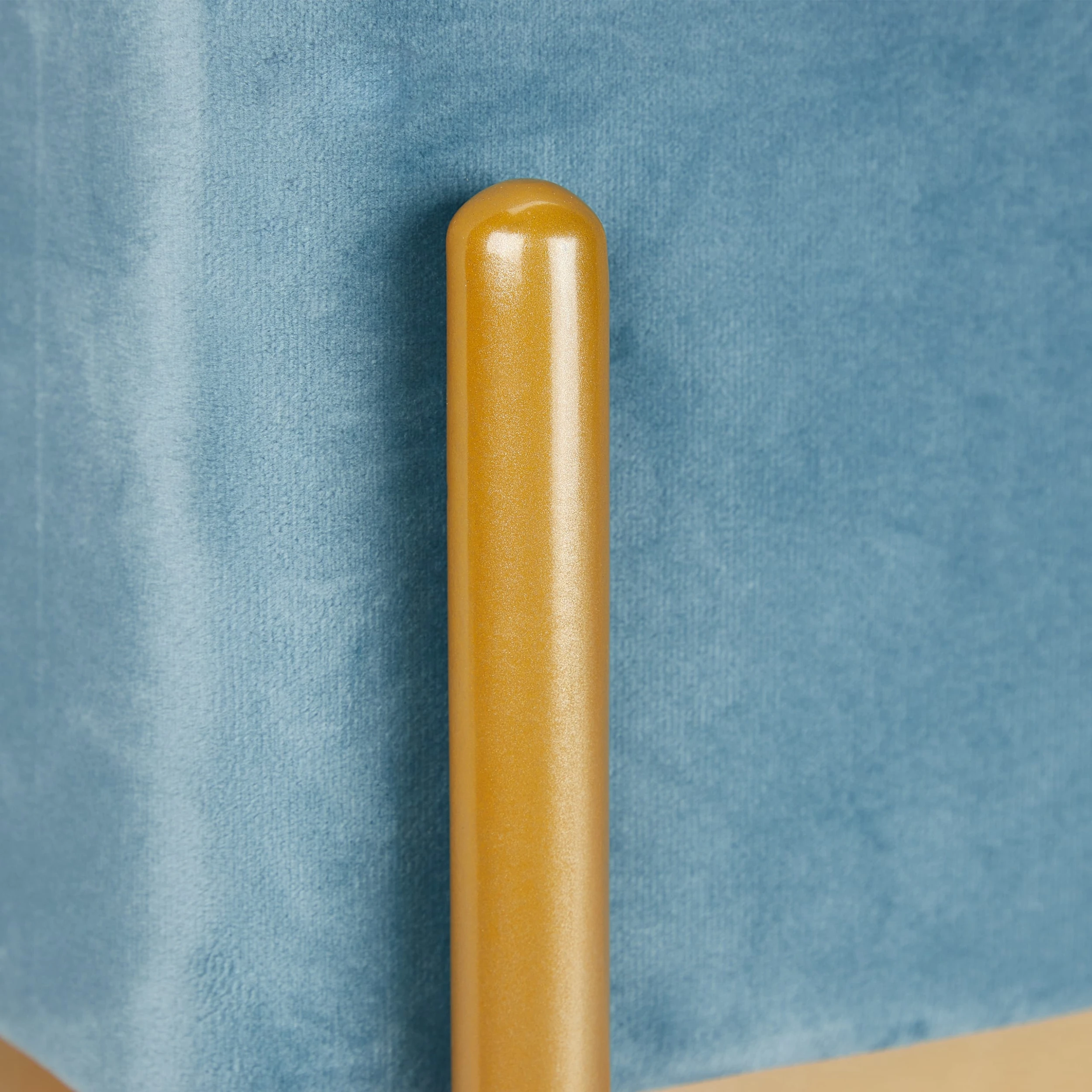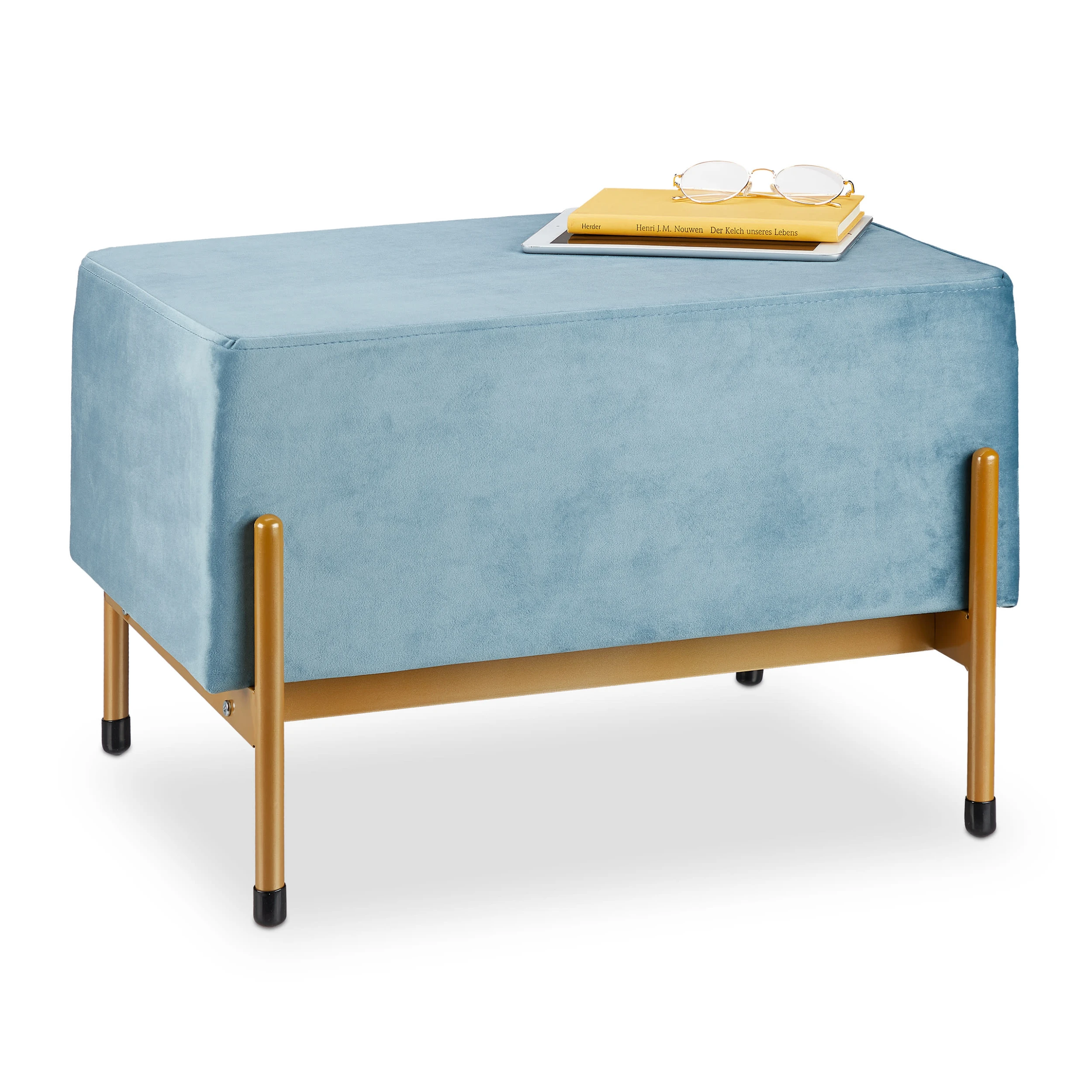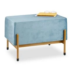 Diese elegante Polstersitzbank mit hellblauem Samt-Bezug ist ein stylisches Schmuckstück für Deine vier Wände. Ob als Dielenbank im Eingangsbereich, Sofabank im Wohnzimmer oder Bettbank im Schlafzimmer – die Designbank ergänzt jeden Raum mit einem Hauch von Eleganz und Glamour. Die Flurbank ist dank gepolsterter Sitzfläche nicht nur eine bequeme Sitzgelegenheit, sondern kann auch als kleine Ablage zum Einsatz kommen. Mit ihren 4 Metallbeinen in edlem Gold steht die Schlafzimmerbank stabil.