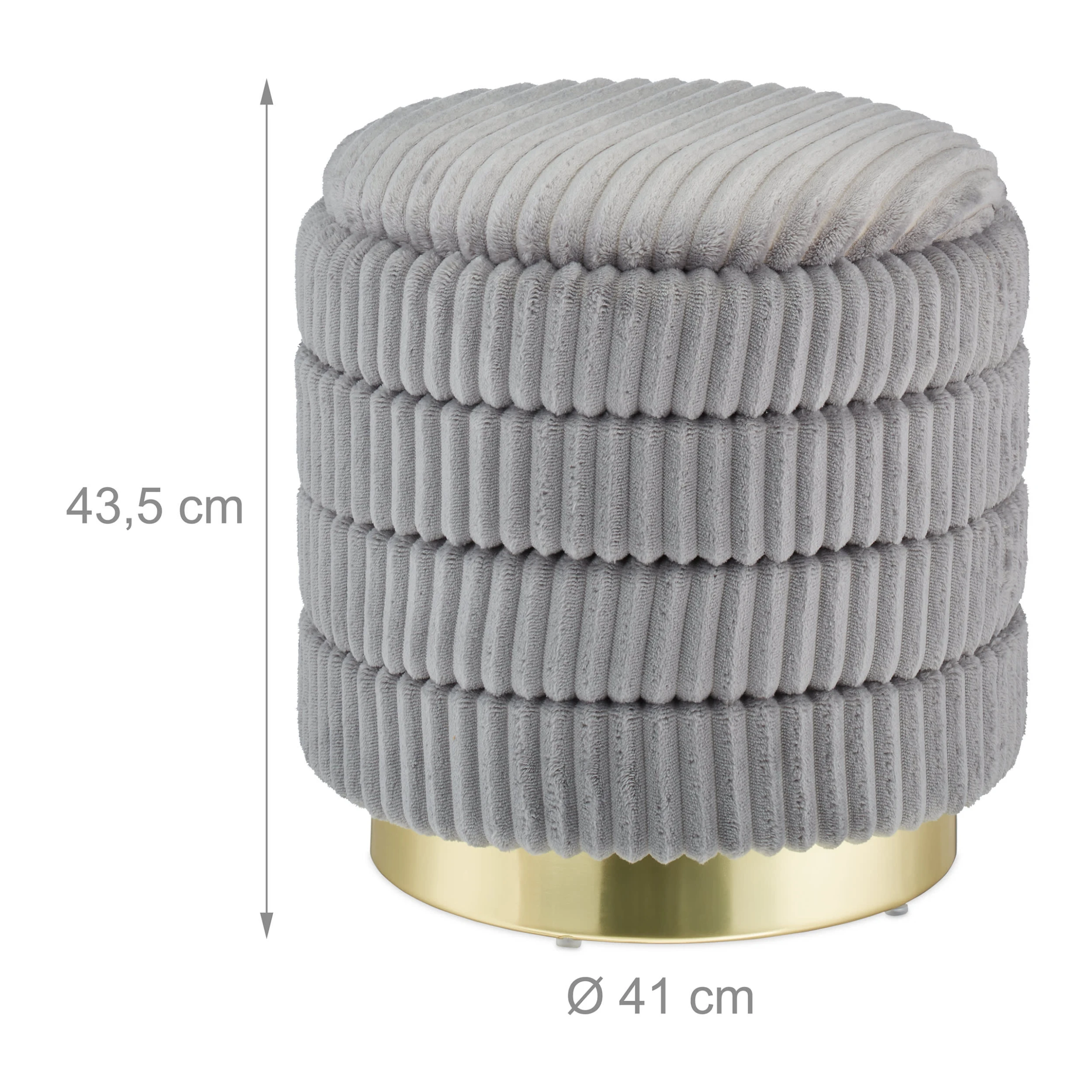 Dieser elegante Polsterhocker mit weichem Kordsamt-Bezug ist ein stylisches Schmuckstück für jeden Raum. Als Dekohocker in der Zimmerecke ist der Samthocker dabei ebenso ein Eyecatcher, wie als Sitzhocker vor dem Schminktisch oder als Beistellhocker neben dem Sofa. Vor allem in modernen Einrichtungskonzepten fügt sich der stilvolle Samtsitzhocker spielend leicht ein und ergänzt sie mit einem Hauch von Eleganz und Glamour. Im Inneren bietet der Hocker Platz, um verschiedenste Dinge zu verstauen.