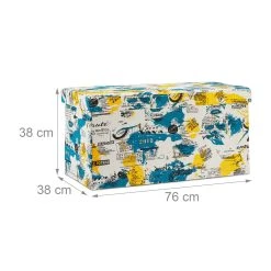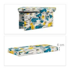 Die faltbare Sitzbank mit Stauraum ist die clevere 2 in 1 Lösung für Flur, Schlafzimmer und andere Wohnbereiche. Die weiche Sitzgelegenheit aus Leinen ist zusammenklappbar und somit schnell auf- und abgebaut. Als Aufbewahrungsbox verstauen Sie Decken, Spielsachen, Zeitschriften und andere Alltagsgegenstände schnell und sichtgeschützt. Die lange Polsterbank ist dank seines Designs ein echter Hingucker. Wählen Sie zwischen verschiedenen Motiven.