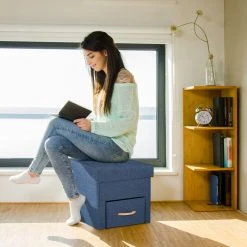 Der Hocker mit Stauraum ist die clevere 2 in 1 Lösung für Wohnzimmer, Flur und andere Wohnbereiche. In der Schublade und im Innenfach verstauen Sie Zeitschriften, Fernbedienung und andere Alltagsgegenstände. Die gepolsterte Sitzfläche sorgt für ein angenehmes Sitzgefühl. Auch als praktischer Fußhocker vor Couch oder Sessel macht der Beistellhocker eine gute Figur. Bei Bedarf lässt sich der Sofahocker platzsparend zusammenfalten und verstauen.