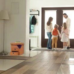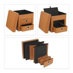 Die Sitzkiste mit Stauraum ist die clevere Lösung für Wohnzimmer, Schlafzimmer, Flur und andere Wohnbereiche. Dank der 2 Schubladen mit Grifföffnungen kannst Du im Inneren des Couchhockers Zeitschriften, Fernbedienungen, Ladekabel und andere Alltagsdinge blickdicht verstauen. Die gepolsterte Sitzfläche sorgt für ein angenehmes Sitzgefühl. Durch sein modernes Design ist der Sofahocker mit Deckel ein toller Hingucker. Bei Bedarf lässt sich der Würfelhocker falten und platzsparend wegräumen.