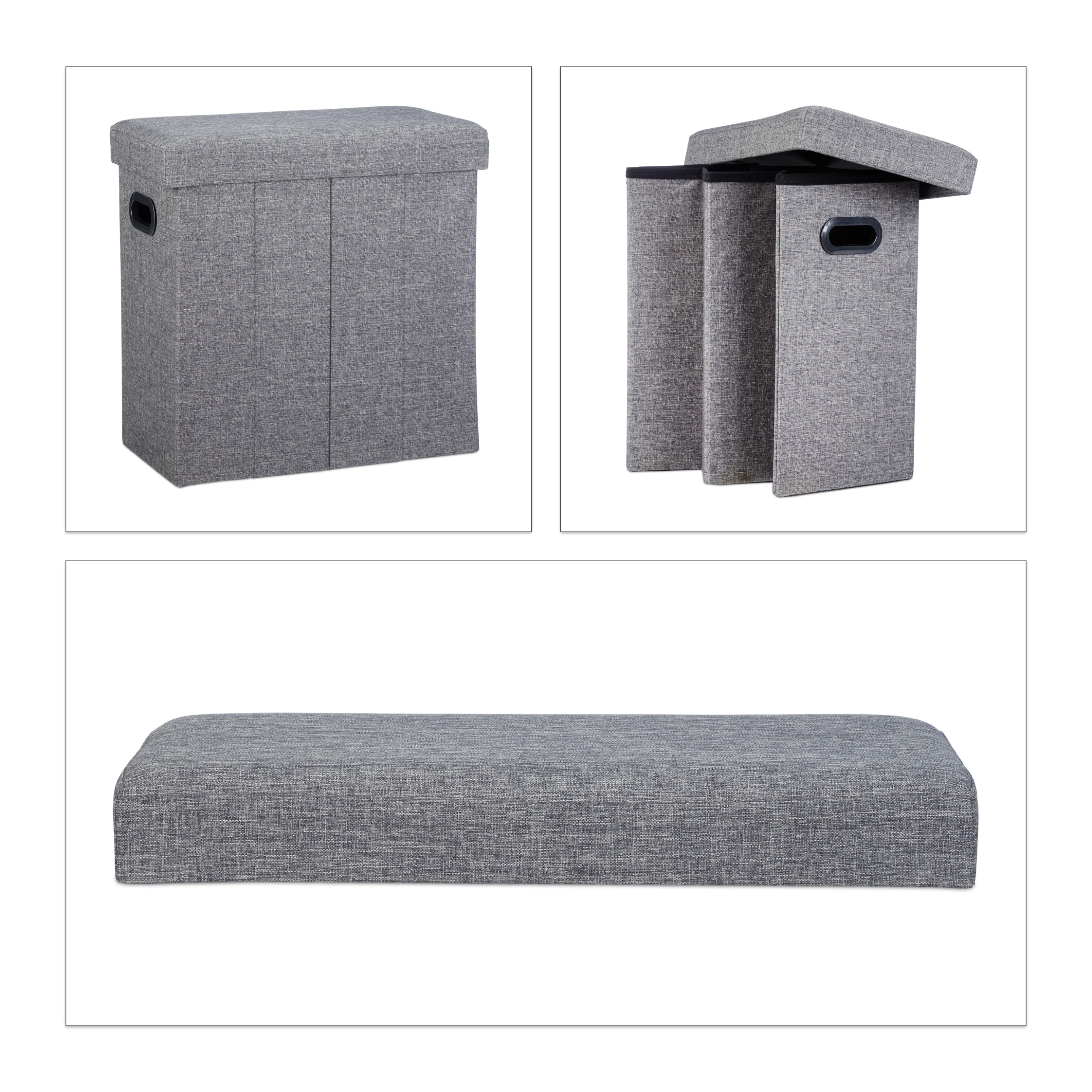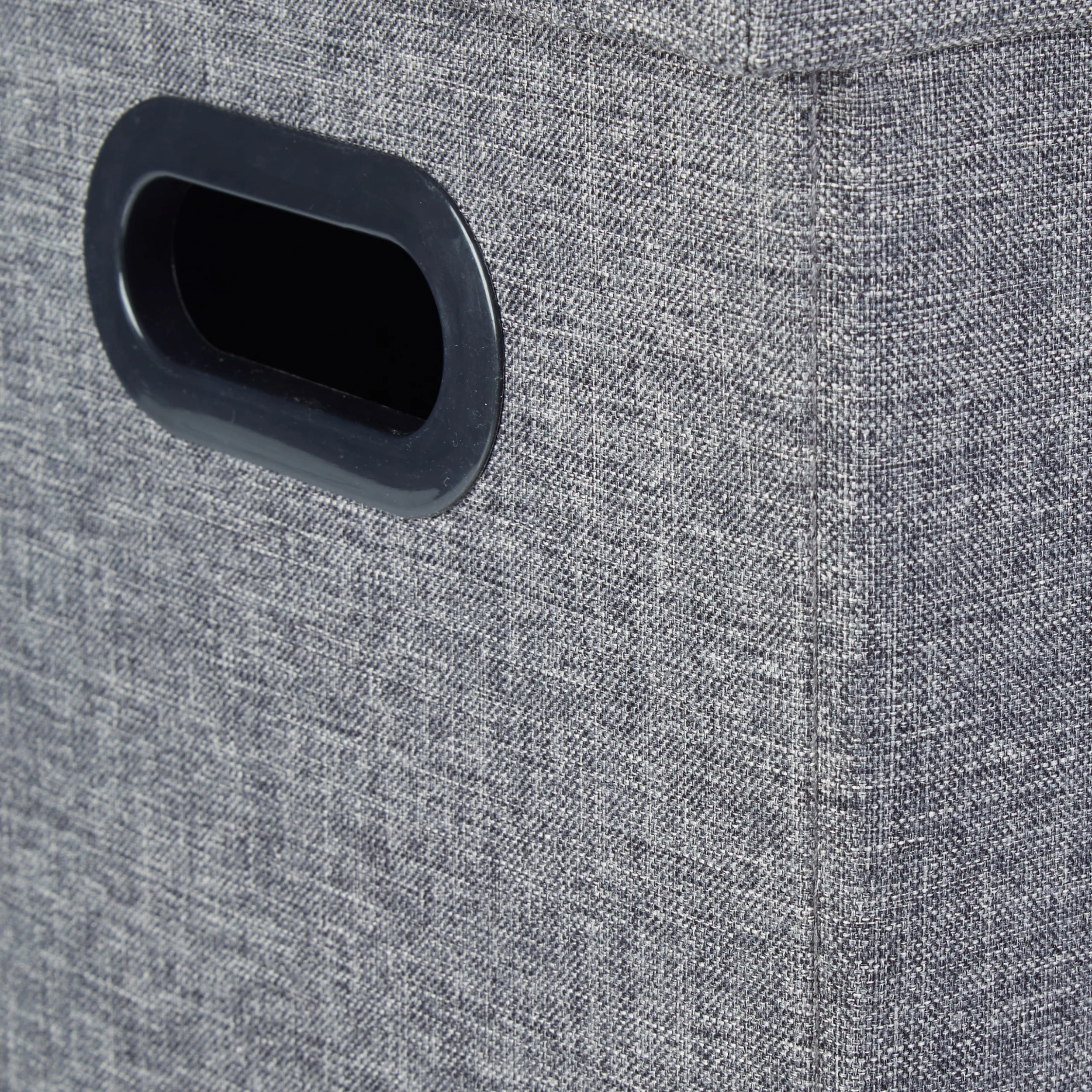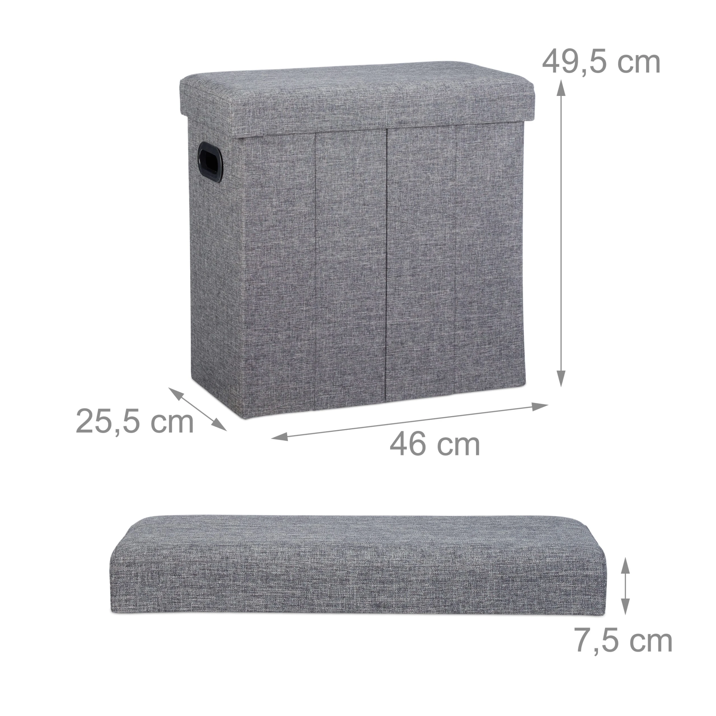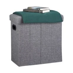 Sie möchten störende Zeitschriften, Kleidungsstücke oder herumliegendes Spielzeuge schnell und platzsparend verstauen? Mit dieser Sitztruhe in Leinen-Optik verbinden Sie die Vorzüge einer vielseitigen Aufbewahrungsbox mit den Stärken eines faltbaren Sitzhockers. Dank der zwei Öffnungen zum Greifen ist der Transport des Kinderhockers ein Kinderspiel.