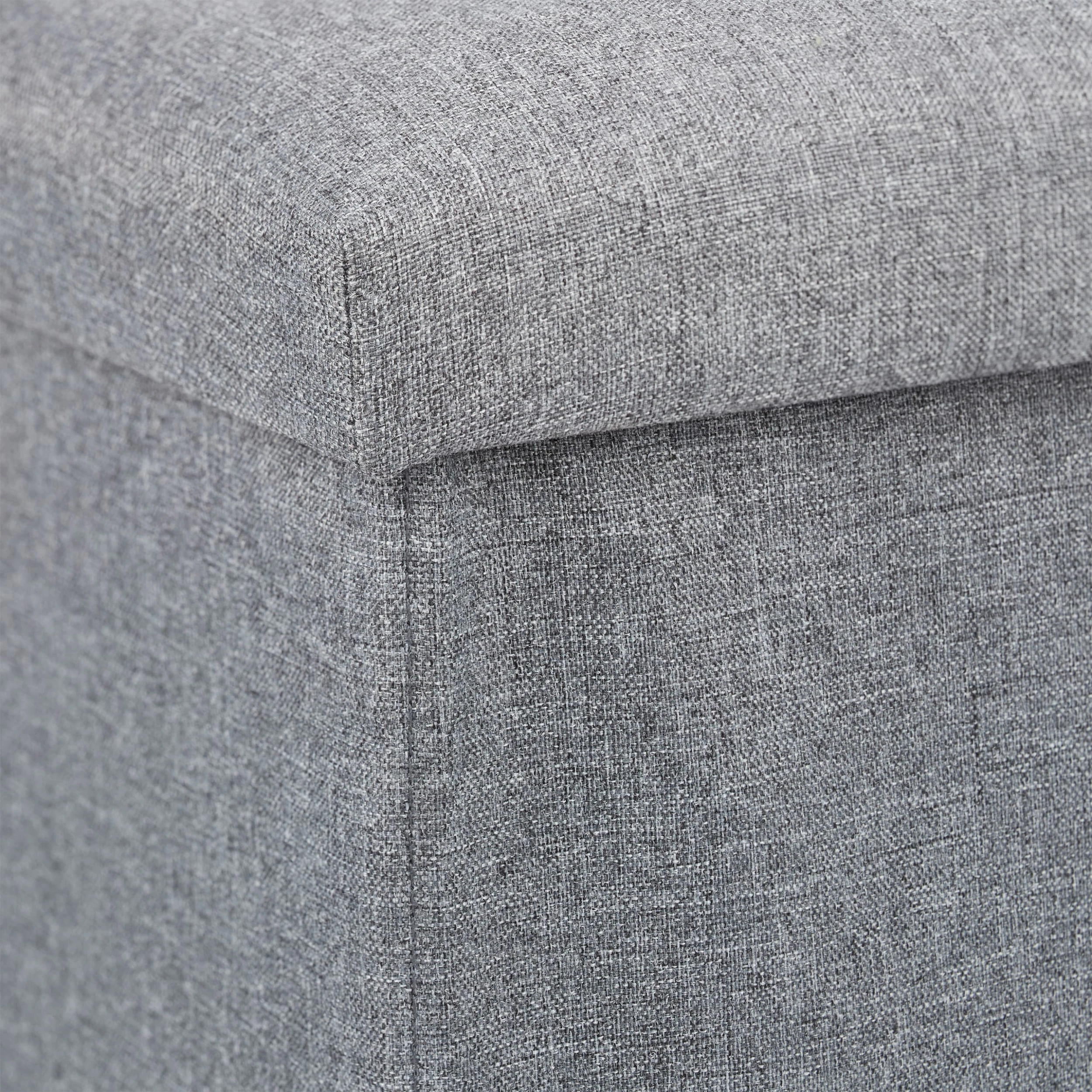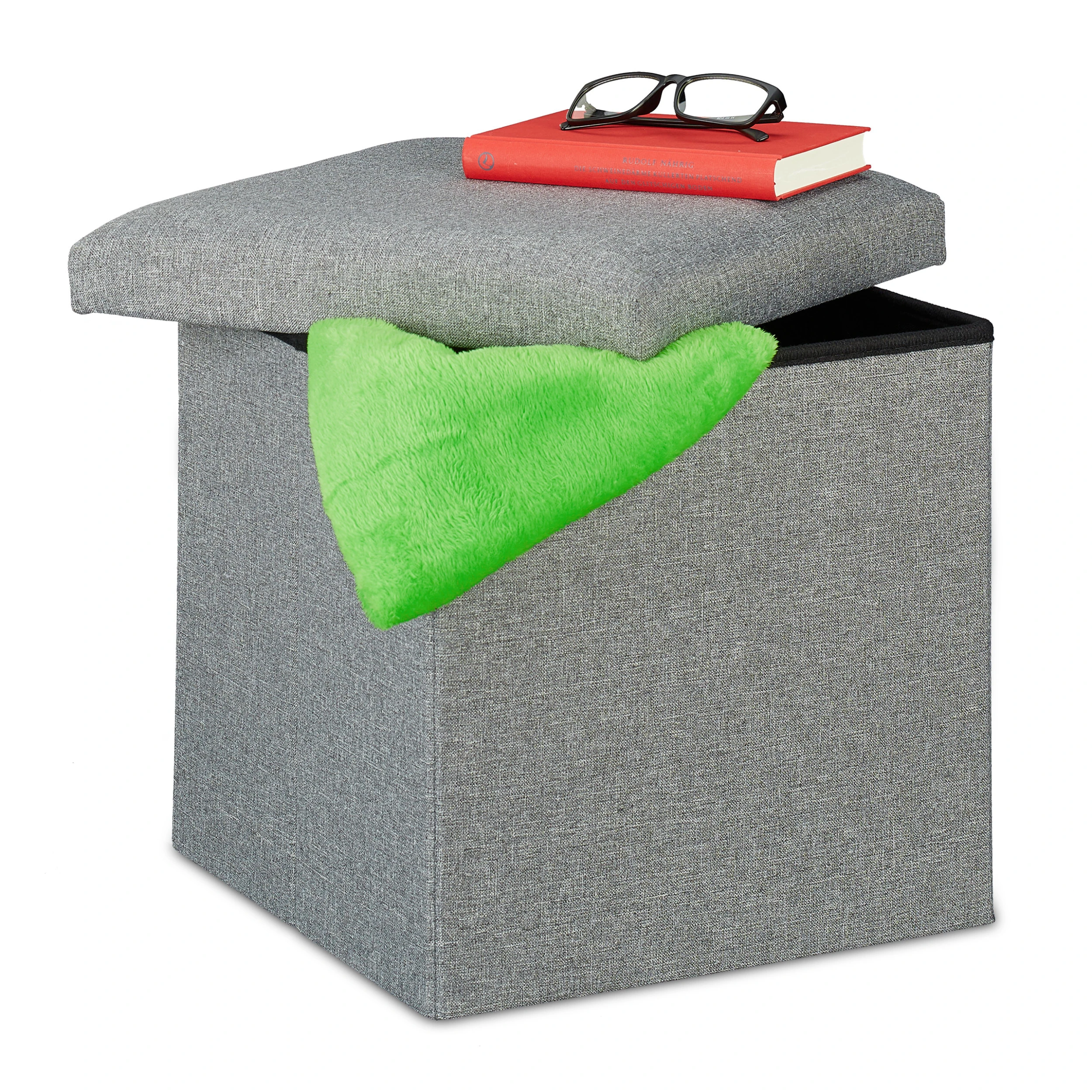 Die Sitzkiste mit Stauraum ist die clevere 2 in 1 Lösung für Wohnzimmer, Schlafzimmer, Flur und andere Wohnbereiche. Die weiche Sitzgelegenheit ist faltbar und somit schnell auf- und abgebaut. Als Aufbewahrungsbox verstauen Sie Decken, Spielsachen, Zeitschriften und andere Alltagsgegenstände schnell und sichtgeschützt. Die gepolsterte Sitzfläche sorgt für ein angenehmes Sitzgefühl. Durch die Leinenoptik ist der Polsterwürfel ein toller Hingucker.