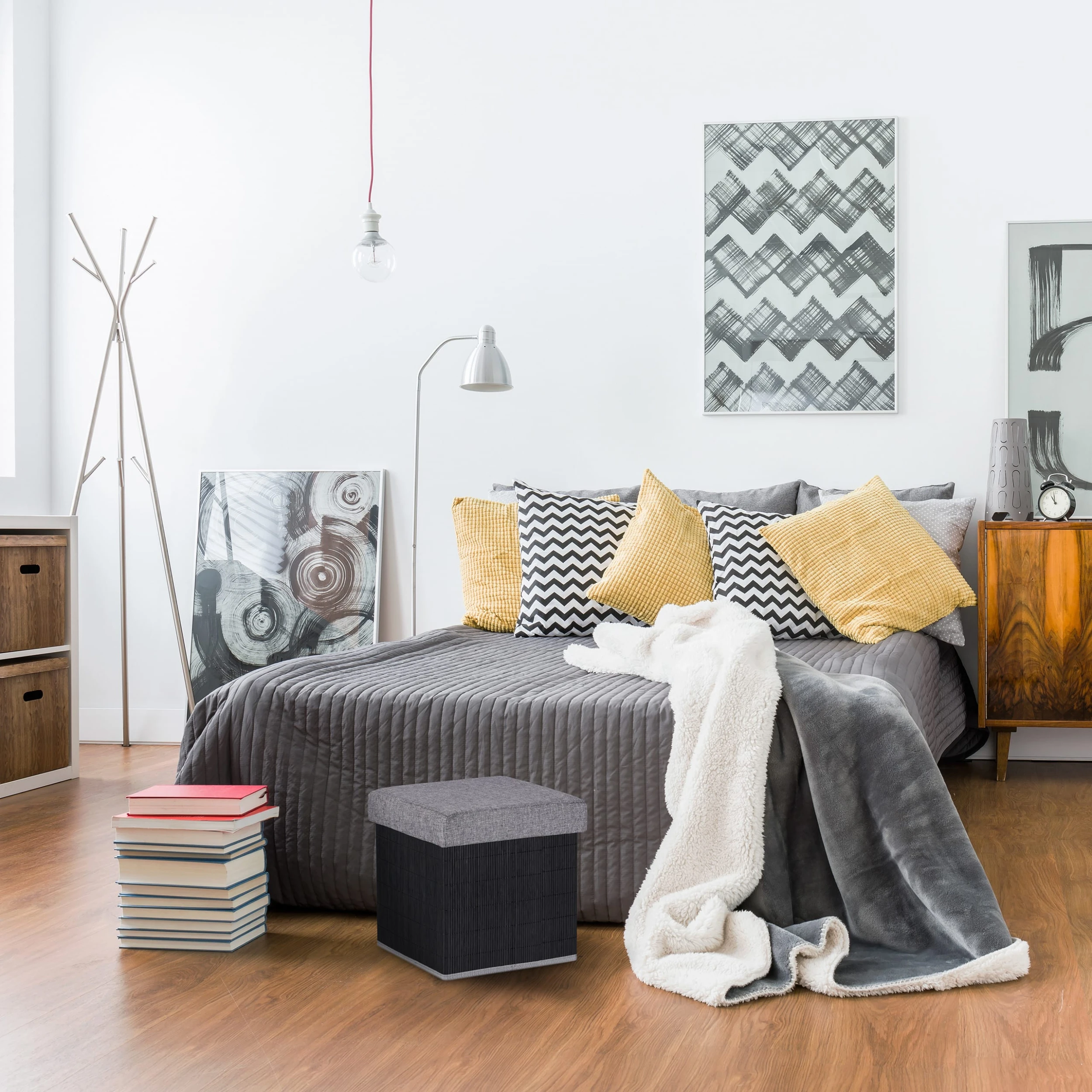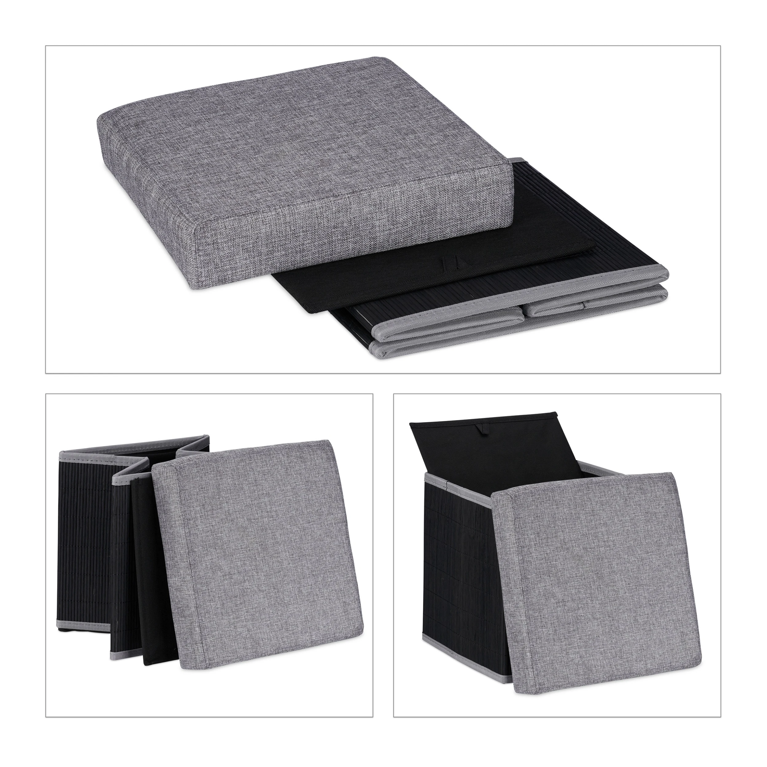 Der Hocker mit Stauraum ist die clevere 2 in 1 Lösung für Wohnzimmer, Flur und andere Wohnbereiche. Der abnehmbare Deckel mit Polsterung sorgt für ein angenehmes Sitzgefühl, während im Innenfach Decken, Bücher und andere Alltagsgegenstände verwahrt werden. Auch als praktischer Fußhocker vor der Couch oder dem Sessel macht der Beistellhocker eine gute Figur. Bei Bedarf lässt sich der Sitzwürfel platzsparend zusammenfalten und verstauen.