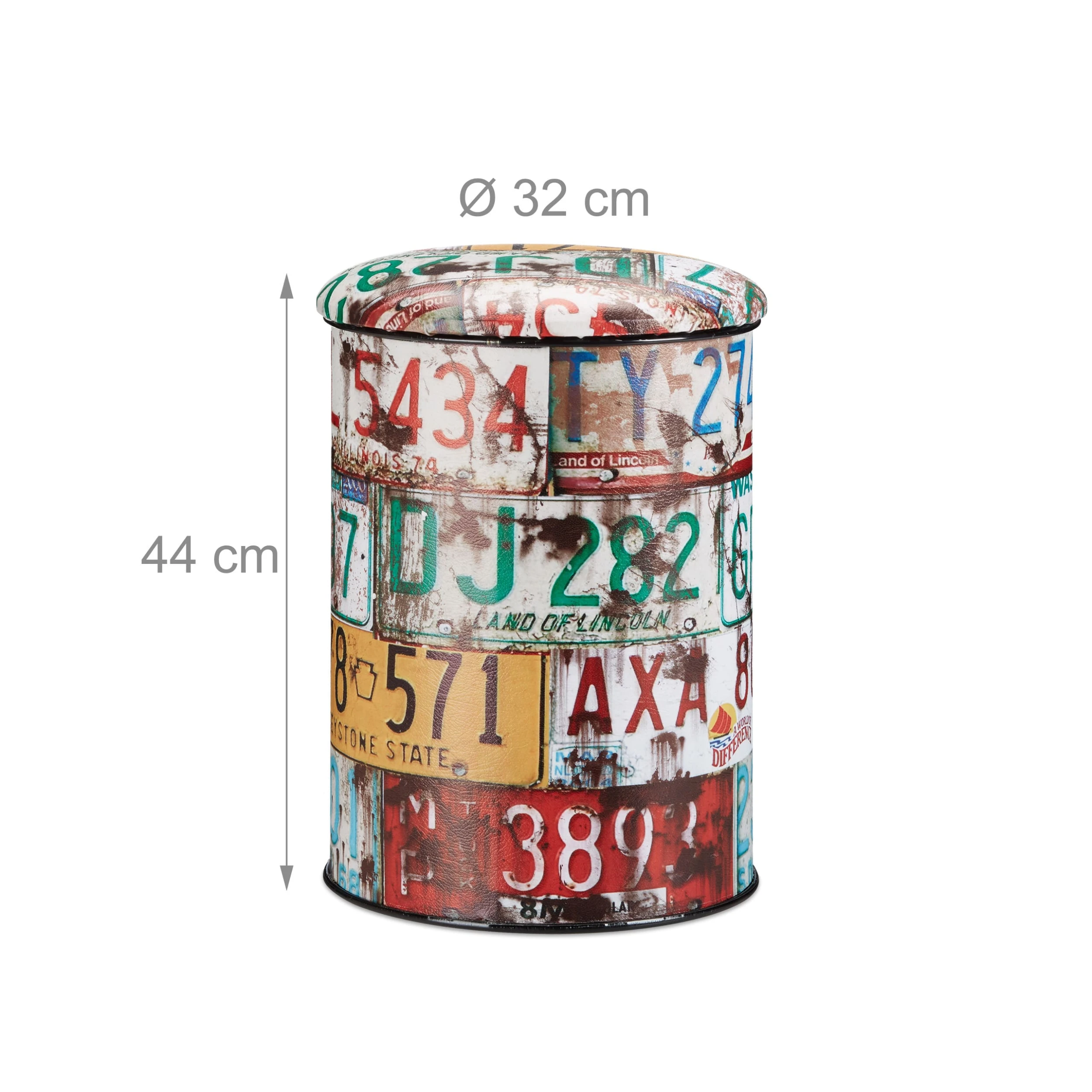 Die Vintage Sitztonne ist die clevere 2-in-1-Lösung für Wohnzimmer, Kinderzimmer und andere Wohnbereiche. Die gut gepolsterte Sitzgelegenheit aus Metall mit Kunstleder-Bezug bietet gleichzeitig Stauraum für Decken, Spielsachen, Zeitschriften und andere Alltagsgegenstände. Die unterschiedlichen Motive der Hocker im Vintage Stil treffen jeden Geschmack und sorgen für Abwechslung in der Einrichtung. Wählen Sie Ihr Lieblingsmotiv.
