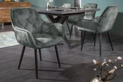 Mit diesem beeindruckenden Esszimmerstuhl zieht ein echtes Design Meisterwerk bei Dir Zuhause ein. Die formstabile Sitzschale ist mit einem hochwertigen Samtbezug bezogen, der jedem Essbereich sofort eine elegante Einrichtungsnote verleiht. Ein zusätzliches Highlight ist die Chesterfield-Steppung auf der Sitzfläche, welche dem Stuhl den letzten schliff verleiht.