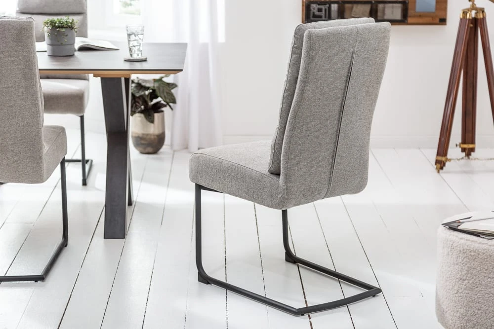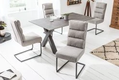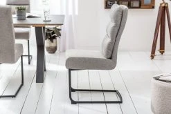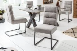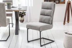 Der Design Freischwinger mit einem Bezug in vintage hellgrau überzeugt auch aufgrund seiner qualitativen Verarbeitung. So garantiert das schwarze Gestell aus pulverbeschichtetem Metall besondere Stabilität. Du wirst lange Freude an Deinem neuen Möbelstück haben. Auch der Bezug ist pflegeleicht und robust genug, um auch im Familienalltag zu bestehen. Lasse Dich von diesem Stuhl begeistern und ergänze Dein Heim um eine besonders angenehme Sitzmöglichkeit.
