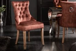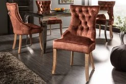 Nimm Platz und freue Dich auf einen neuen Lieblingsplatz am Esstisch! Unsere bequemen Stühle aus der Serie CASTLE vereinen dank Nosagfederung höchsten Sitzkomfort mit einem eleganten, gemütlichen Design. Die hohe Rückenlehne und die Polsterung sorgen für besten Komfort, zudem ist er mit wunderschönen Zierknöpfen versehen, die an das weltbekannte Chesterfield Design erinnern. Der Bezugsstoff und die Holzfüße hingegen verleihen dem Stuhl seinen charmanten Landhaus-Look.