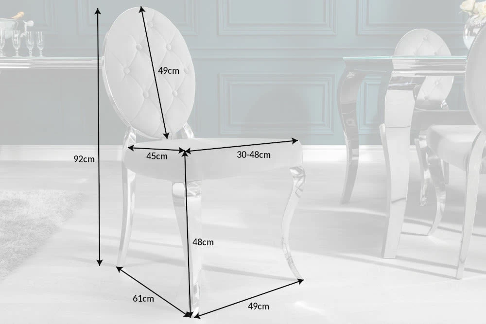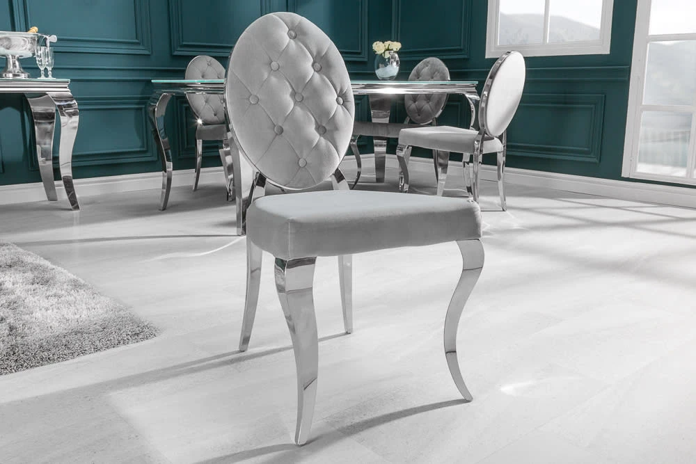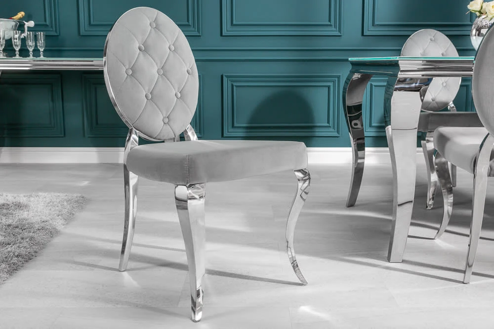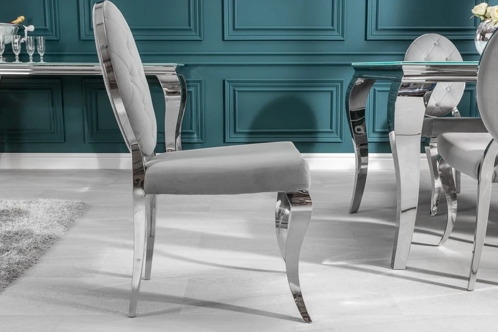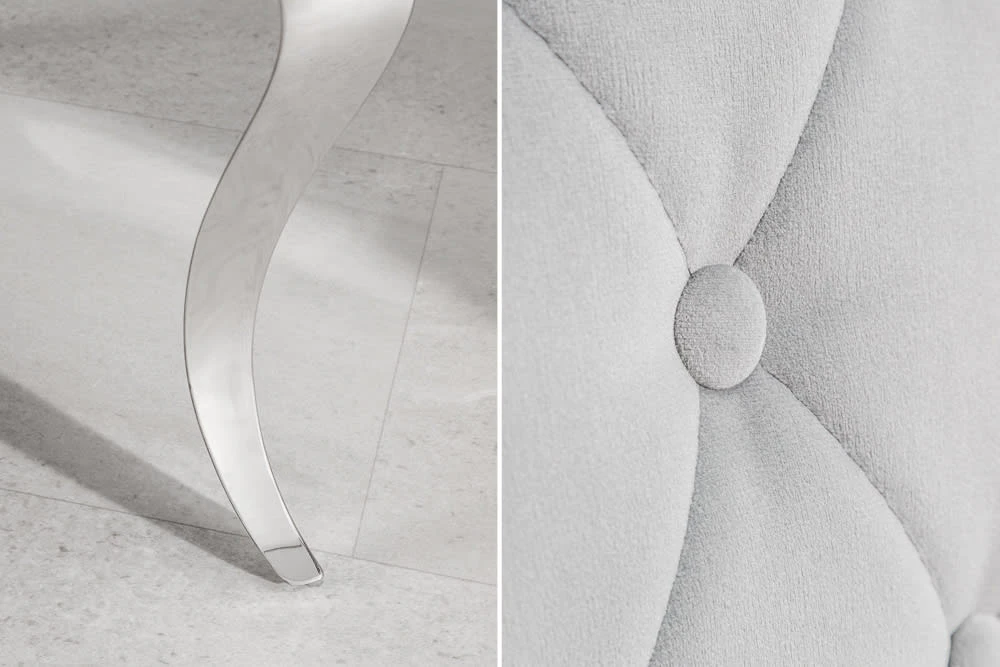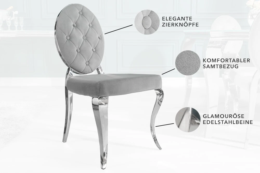 Das luxuriöse Design dieses Stuhls wird definiert durch die edel geschwungenen Stuhlbeine und den glänzenden Samt. Für den optimalen Sitzkomfort sorgt die hochwertige, weiche Polsterung der Sitz- und Rückenfläche. Die eingelassenen Knöpfe verleihen dem Stuhl einen verspielten Charakter. Damit wird das Möbelstück zu einem besonderen Blickfang Deines Wohnraums.