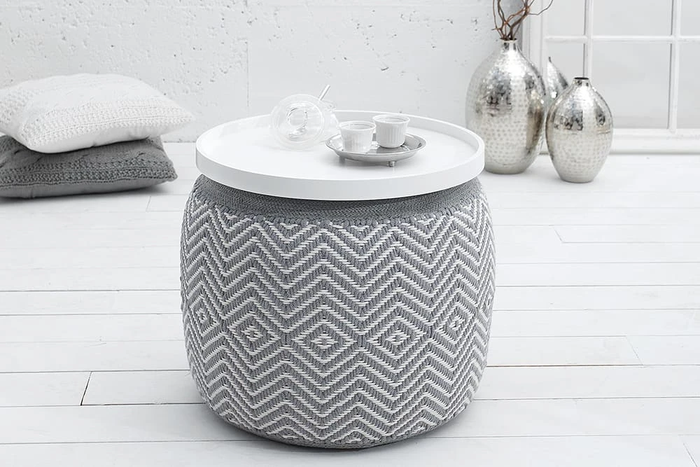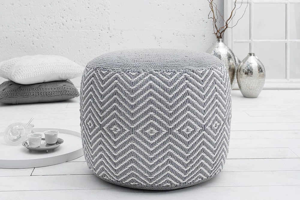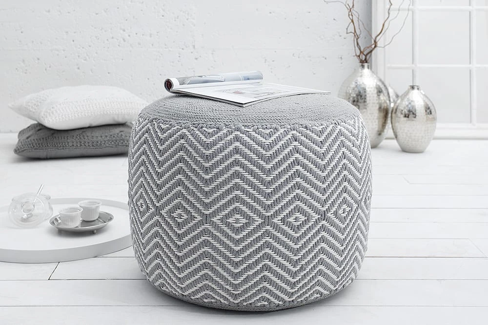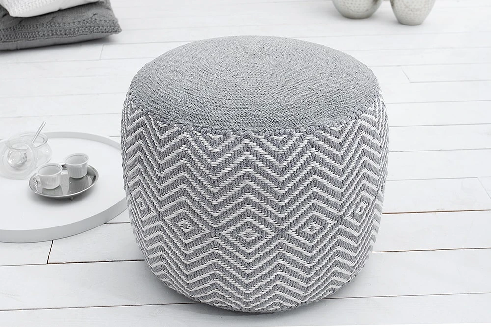 Mit Strick – ob gekauft oder selbstgemacht – liegen Sie voll im Trend. Als Sitzgelegenheit oder Fußbank, unsere Design Poufs aus hochwertiger Baumwolle finden in jedem Zuhause ihren Platz. Jeder Hocker wurde in liebevoller Handarbeit gestrickt, besonders aufwendig ist das gewebte Muster im orientalischen Design. Stilvoll, modern und funktionell – die Sitzhocker können überall platziert werden, ob im Wohnzimmer als gemütlicher Fußhocker oder im Schlafzimmer als dekoratives Wohnaccessoire.