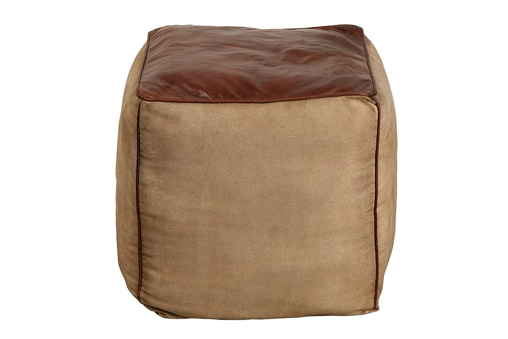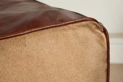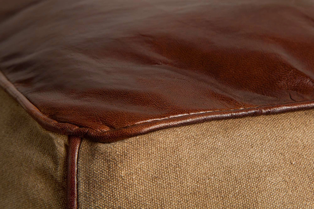 Mit diesem hochwertigen Sitzwürfel zieht ein ganz besonderes Schmuckstück bei Dir Zuhause ein. Der Würfel wurde mit zwei verschiedenen Bezügen designt: Die Sitzfläche besteht aus edlem Echtleder in einem satten Dunkelbraun, die Seiten des Poufs sind mit Leinenstoff bespannt. Die Kontrastnähte aus Leder bieten optisch einen stimmigen Kontrast auf dem helleren Leinenstoff und rahmen die Flächen effektvoll ein.