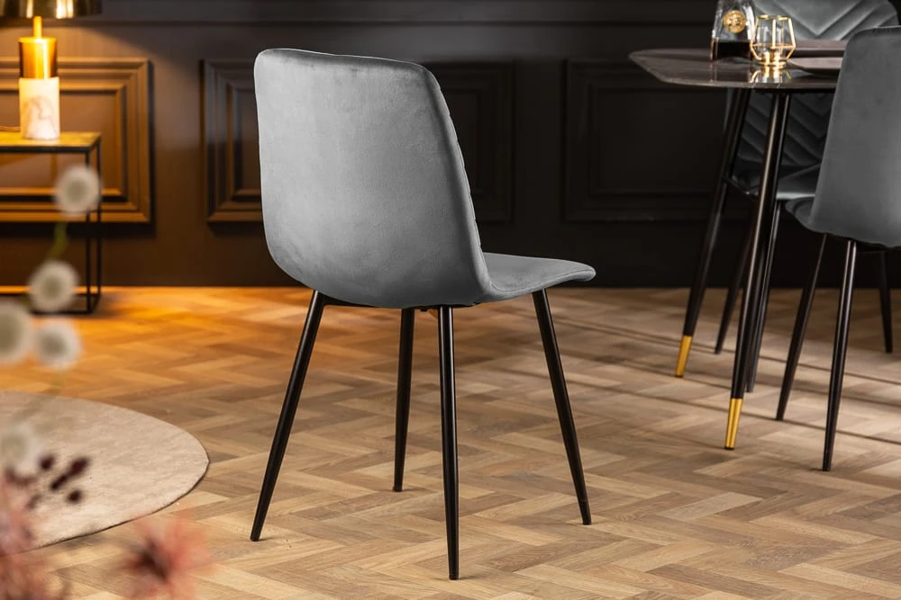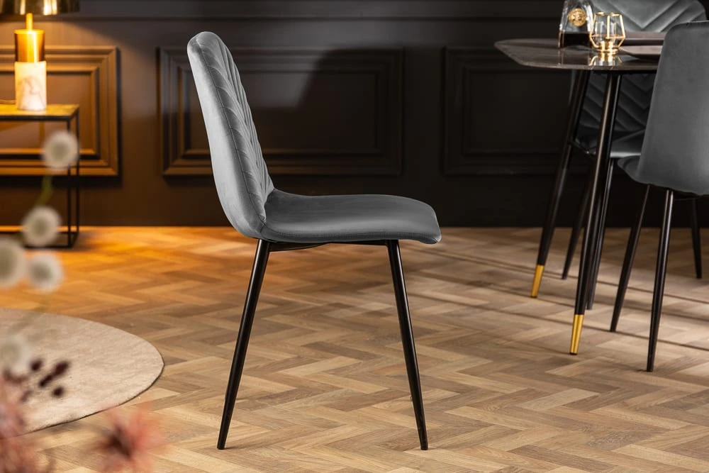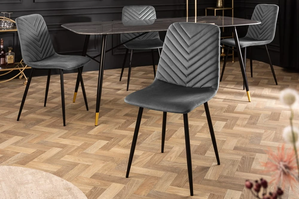 Trotz des extravaganten Bezugs aus Samt kannst Du den Stuhl mühelos mit ganz unterschiedlichen Stilen und Möbeln kombinieren. Der Stuhl passt zu einem Massivholz-Esstisch genau so gut wie zu einem modernen Keramiktisch. Unser Tipp: Kombiniere den Stuhl mit weiteren Möbeln und Accessoires mit Samtbezug – diese greifen den Look der Esszimmerstühle natürlich besonders gut auf!