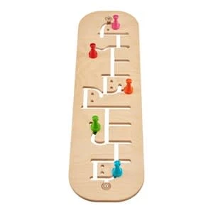 Die Garderobe Movella von Selecta macht aus einer Kindergarderobe ein ganz besonderes Unikat. Bunte Garderoben-Haken lassen sich in vorgegebenen Rillen immer neu anordnen. Kindergarderobe Movella mit Tiermotiven 74(L) x 20,5(H) cm aus Holz geeignet von 3 bis 10 Jahre Die Kindergarderobe macht ihrem Namen alle Ehre. Die schematischen Umrisse von 4 Tierfiguren sind kindgerecht gestaltet. Ganz praktisch sorgen die 5 Garderobehaken in der Form von Spielfiguren für immer neue Kombinationen. Die Kinder können die Haken in den Rillen der Tierkörper bewegen und neu anordnen. Leuchtende bunte Farben erhöhen den Aufforderungs-Charakter. Neben der Spielfreude fördert diese Idee einer Spielgarderobe das Zusammenspiel von Hand und Auge.