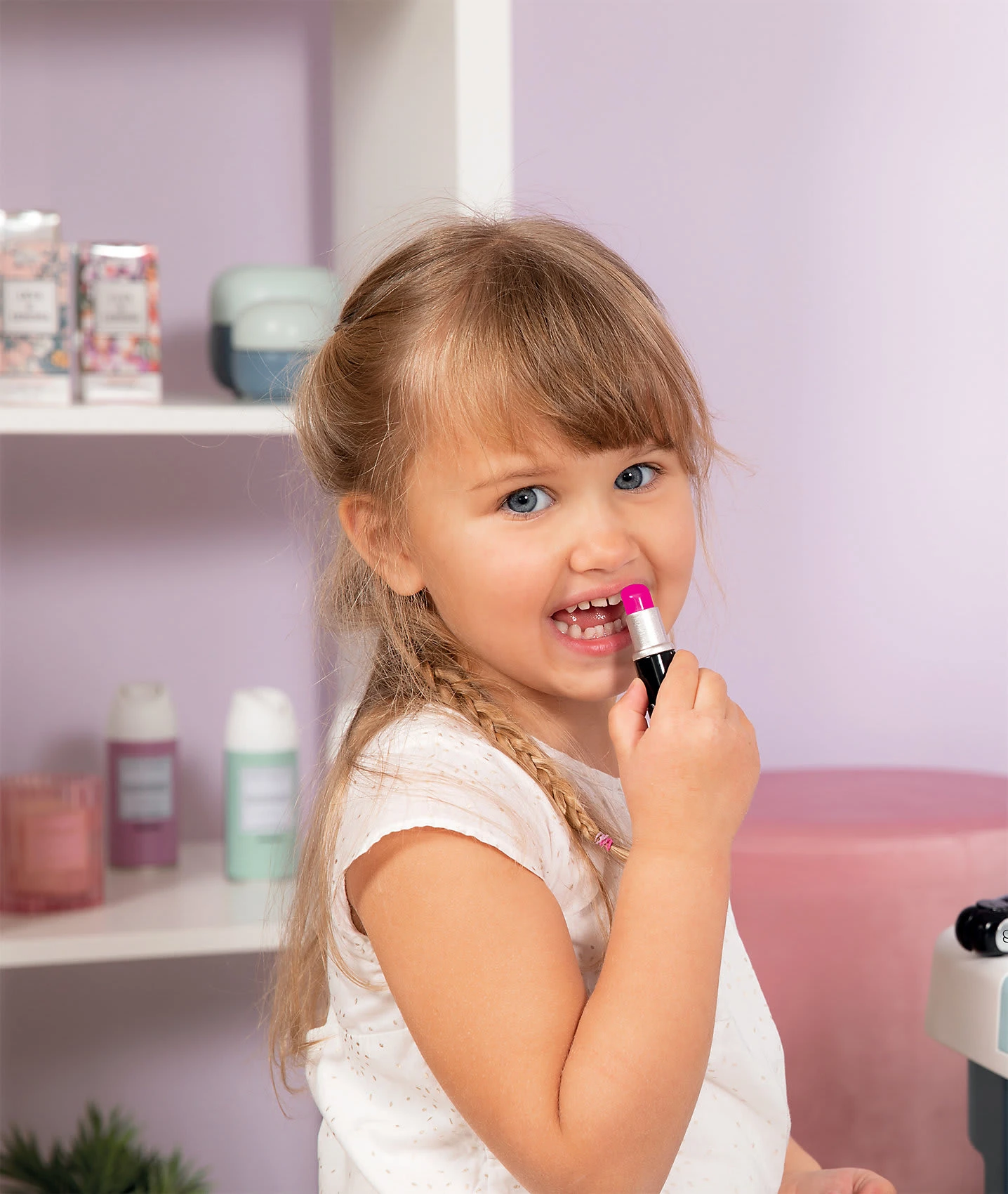 Für angehende Stylist*innen: der coole “My Beauty”-Kosmetikkoffer von Smoby! Das praktische Köfferchen sieht einfach klasse aus, ist mit einem Tragegriff und zwei Verschlussriegeln ausgestattet und ist mit dreizehn Zubehörteilen befüllt. Hier sind Nagellacke, Lippenstifte, eine Lidschatten-Palette, Wimperntusche, eine Bürste, ein Kamm, ein Haarreif, ein Ring und verschiedene Fläschchen mit dabei. Die unechten Spielkosmetika eignen sich klasse, um verschiedene Looks und Frisuren an sich selbst oder der Lieblingspuppe auszuprobieren.