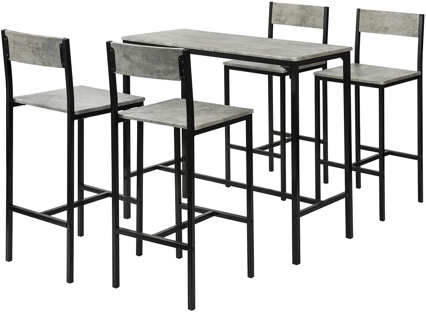 Die Sitzgruppe enthält einen Tisch und 4 Barhocker.