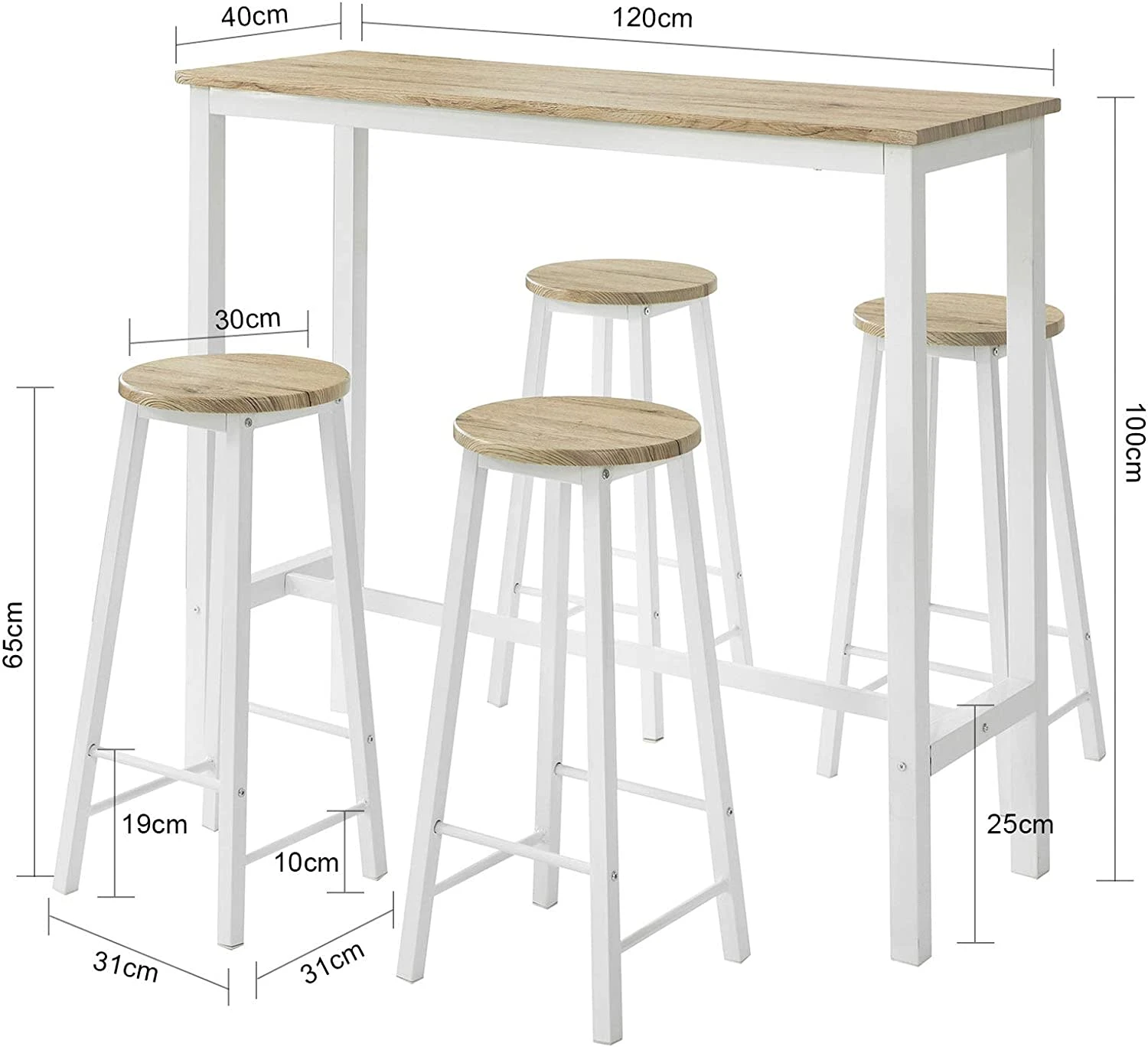 Ob für die eigene Hausbar, für die Küche oder auch als Esstisch können Sie dieses Set hervorragend an Ihre Bedürfnisse anpassen.