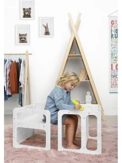 – je nach Position als niedriger Stuhl, Hochstuhl oder kleiner Tisch verwendbar