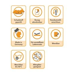 Die Babymatratze “Lena” besitzt einen Komfortschaum-Kern und Doppeltuchbezug, der leicht per umlaufenden Reißverschluss entfernt und gewaschen werden kann. Die Antipilling Ausrüstung sorgt dafür das auf der Oberfläche keine Knötchen entstehen.